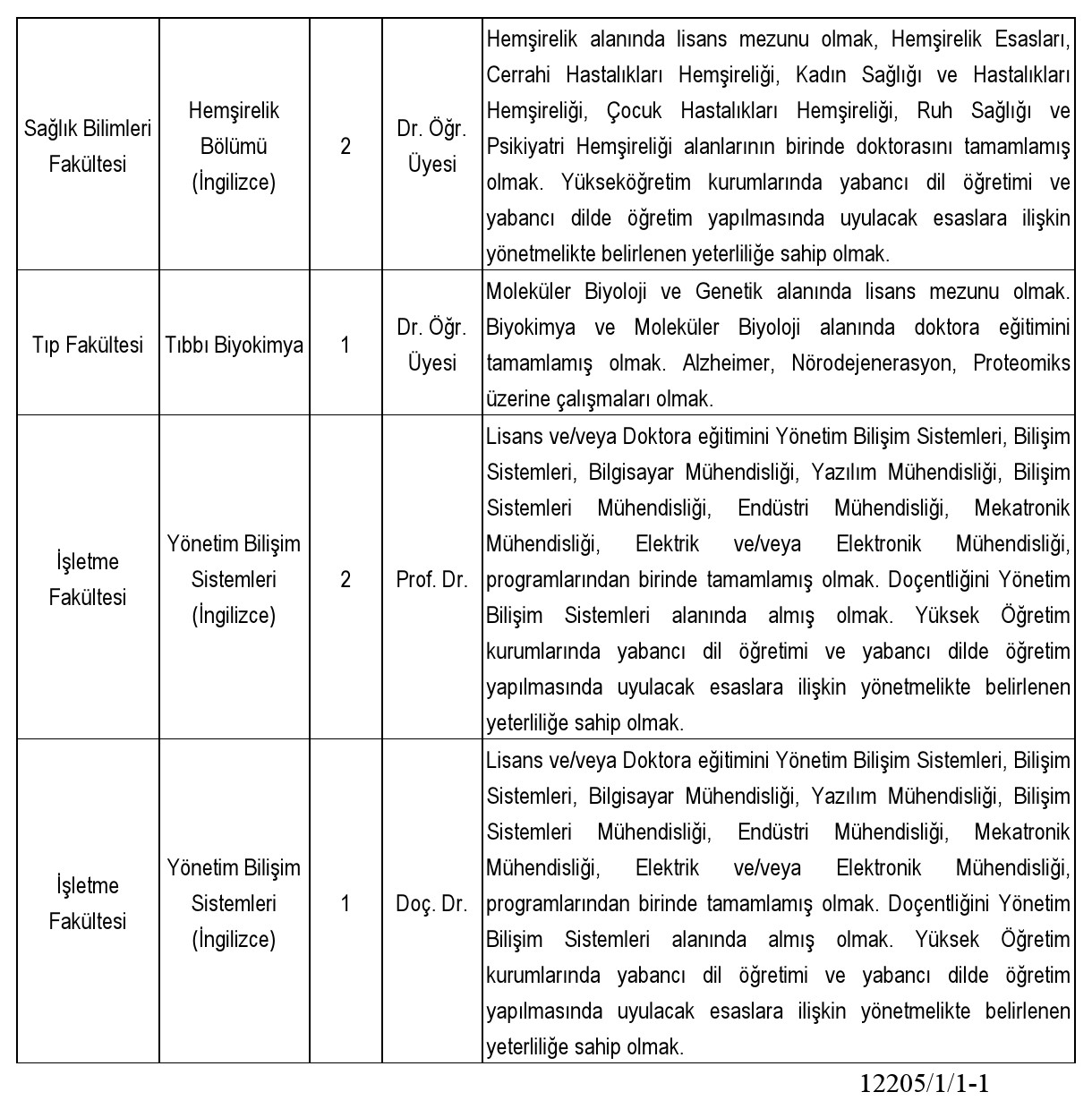 ÖĞRETİM ÜYESİ ALIM İLANI