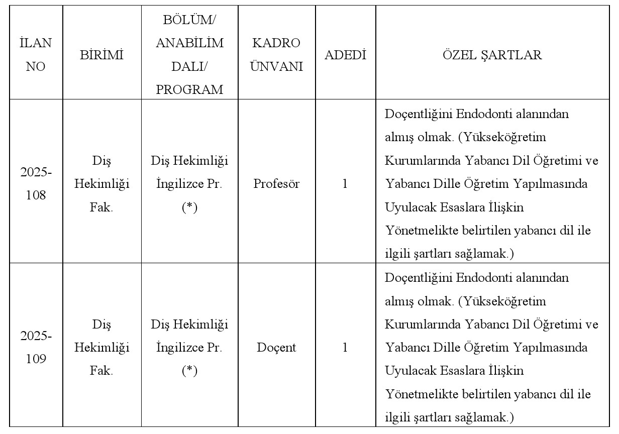 ÖĞRETİM ÜYESİ ALIM İLANI