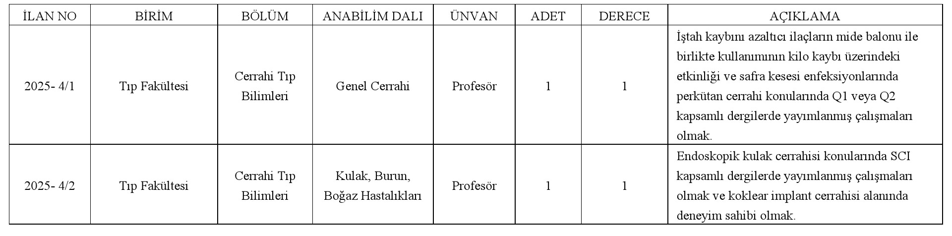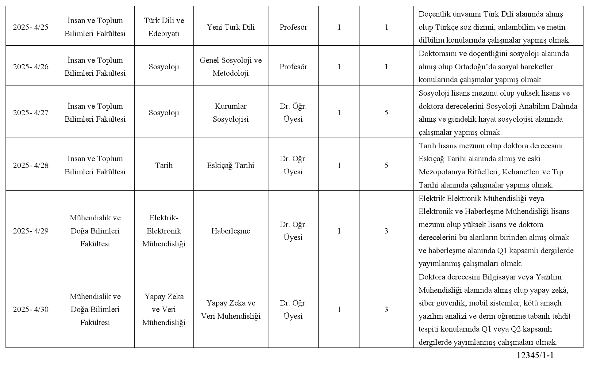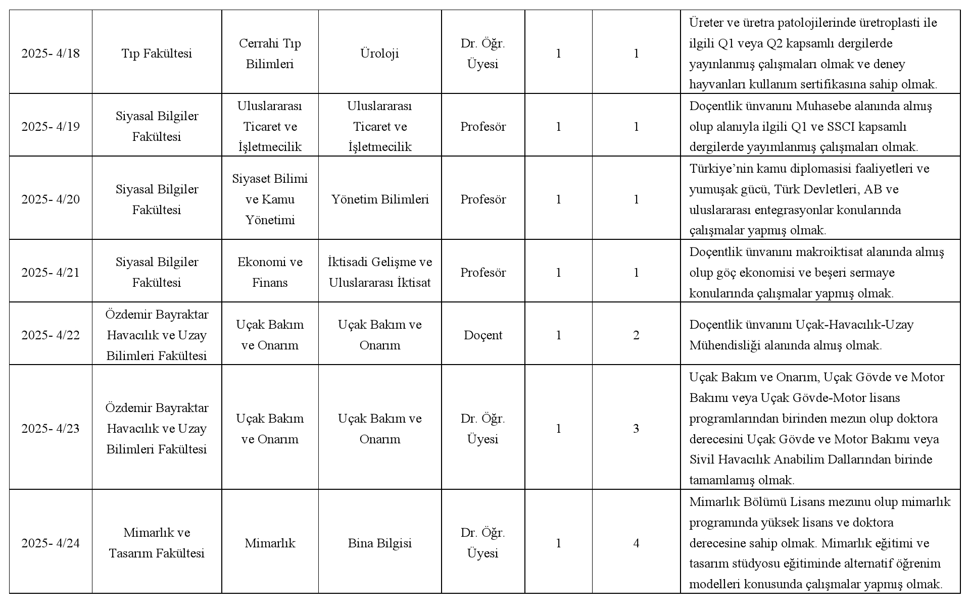 ÖĞRETİM ÜYESİ ALIM İLANI