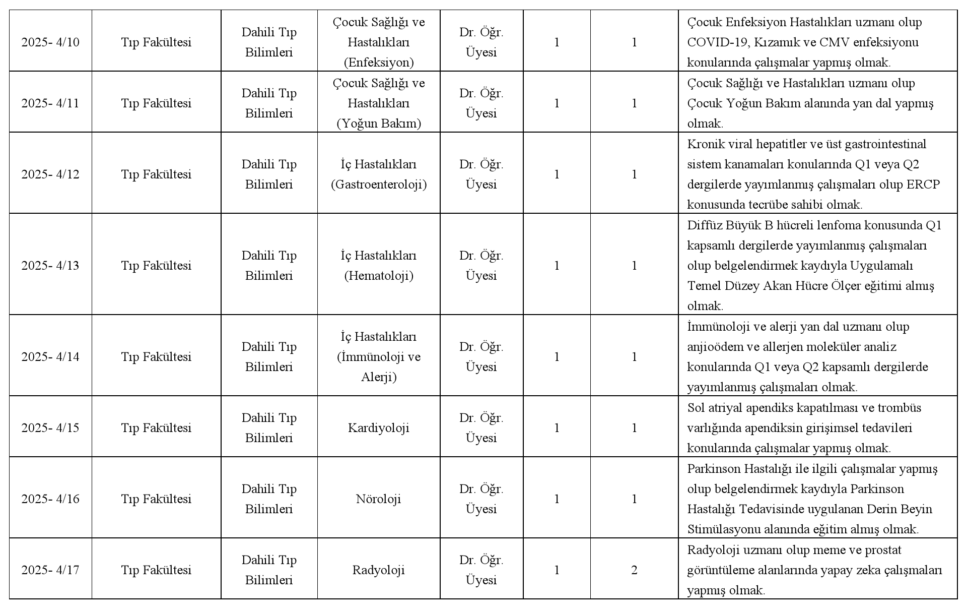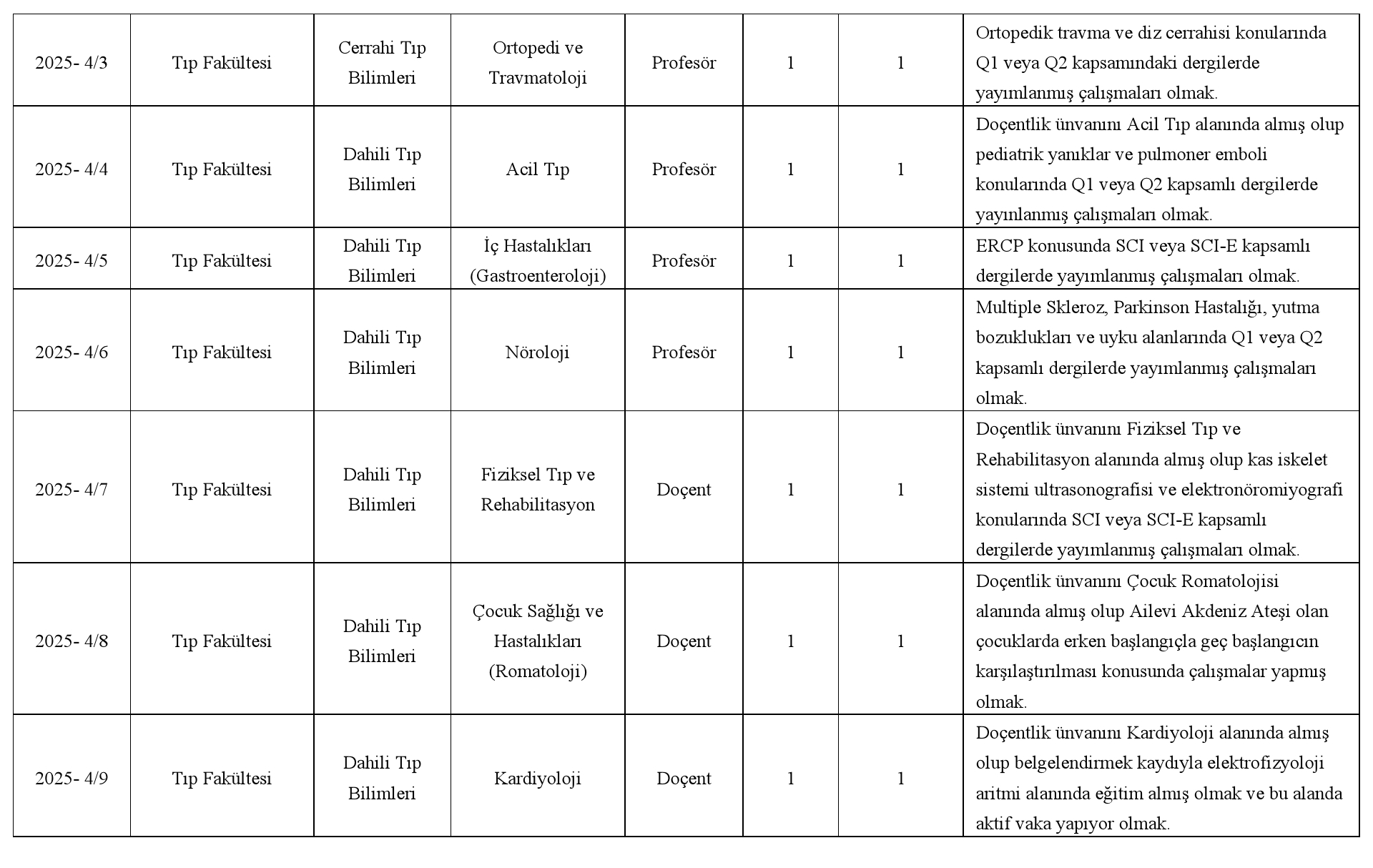 6. Doçent ünvanını almış adaylar Dr. Öğretim Üyesi kadrolarına başvuramaz.