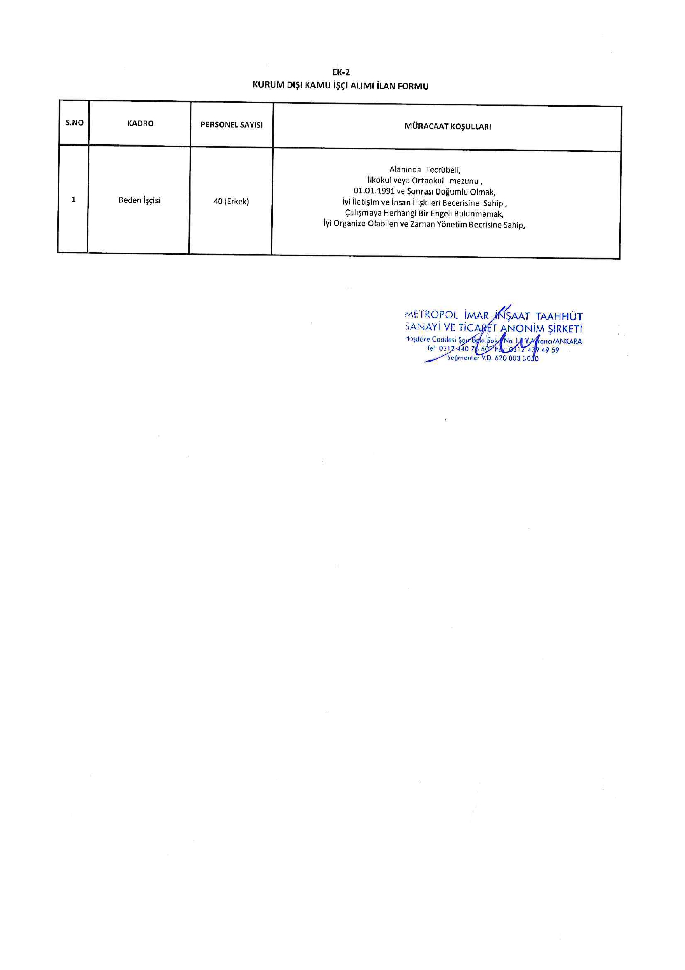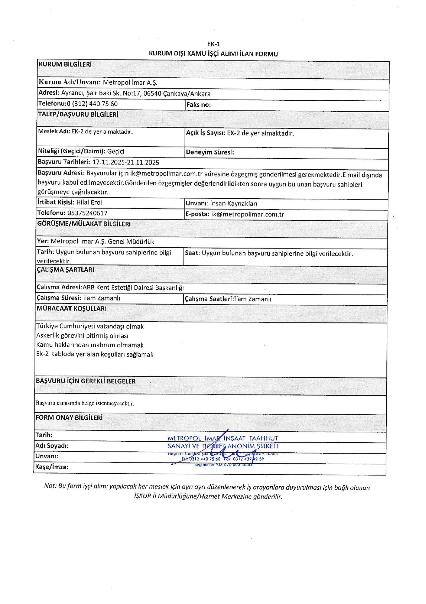 Ana sayfaGeçici İşçi İlanları Ankara Metropol İmar Geçici 40 İşçi Alacak Ankara Metropol İmar Geçici 40 İşçi Alacak. Son başvuru tarihi 21 Kasım 2025 Kaynak : İşkur İlan Giriş : 17 Kasım 2025 23:30, Son Güncelleme : 18 Kasım 2025 00:20 Yazdır Yorumlar (0) Abone Ol