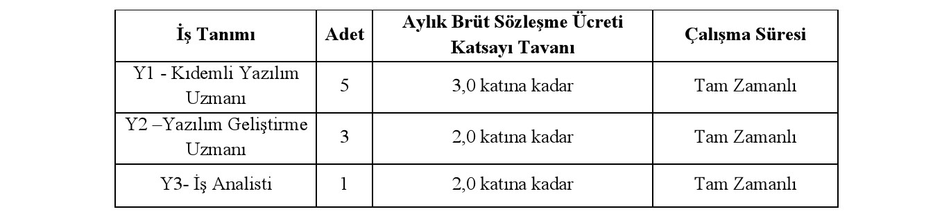 Y2 -YAZILIM GELİŞTİRME UZMANI (3 Kişi - 2,0 Katına Kadar)