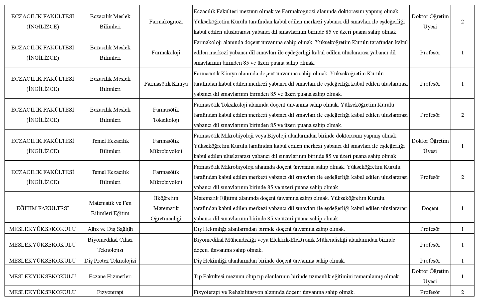 Üniversitemize 2547 sayılı Yükseköğretim Kanunu'nun ve Öğretim Üyeliğine Yükseltilme ve Atanma Yönetmeliği'nin ilgili maddeleri uyarınca ''Öğretim Üyesi'' alınacaktır.