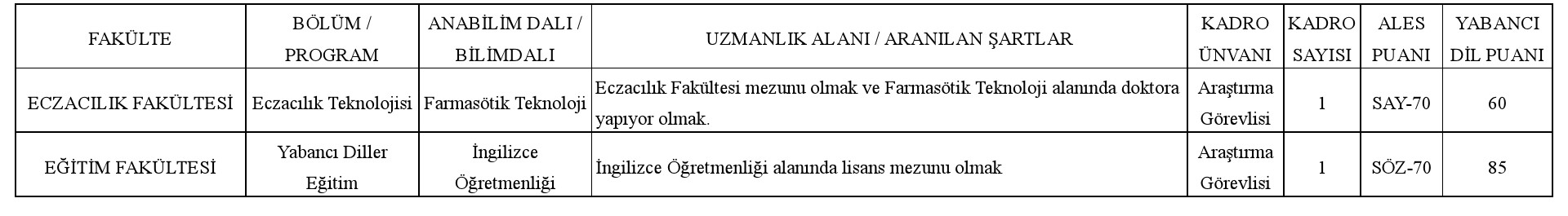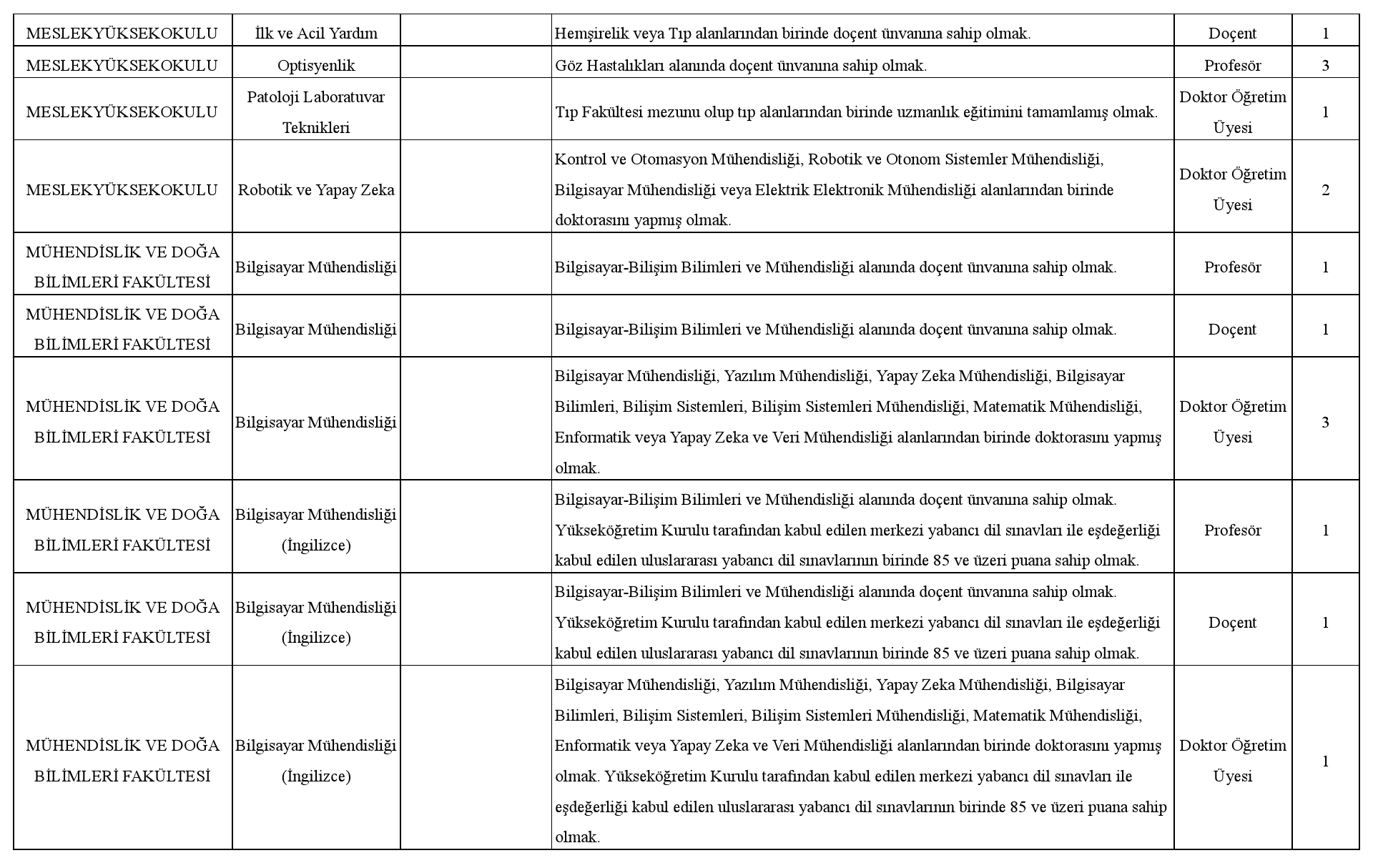 ÖĞRETİM ELEMANI ALIM İLANI