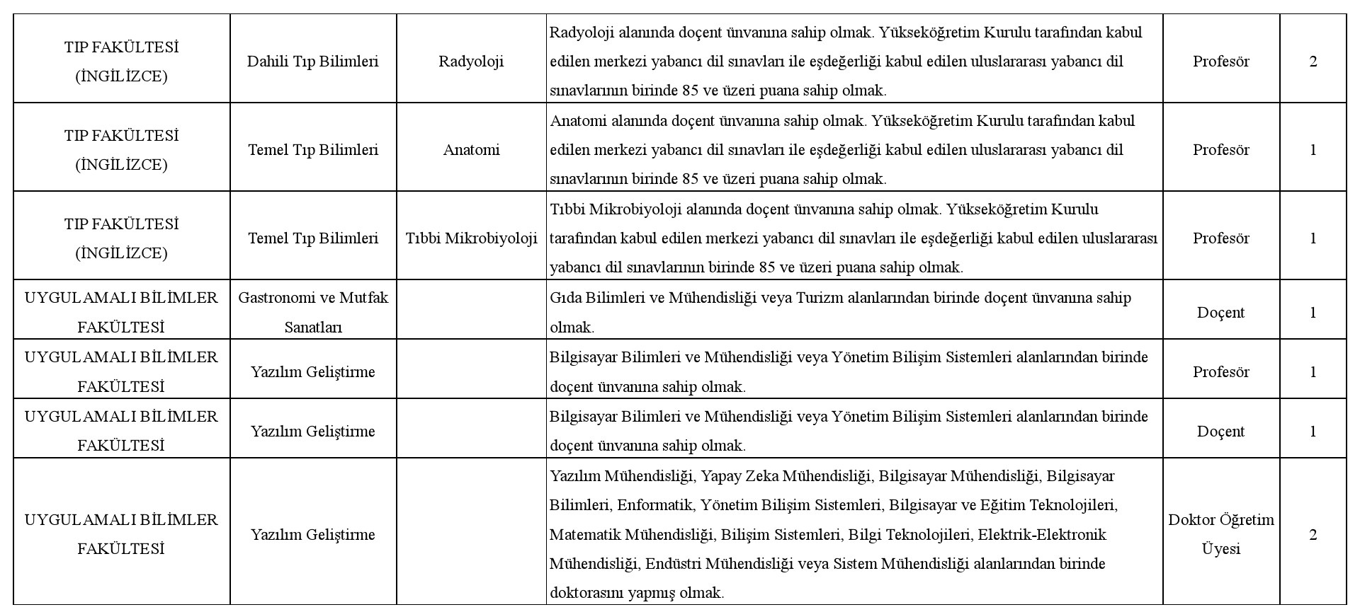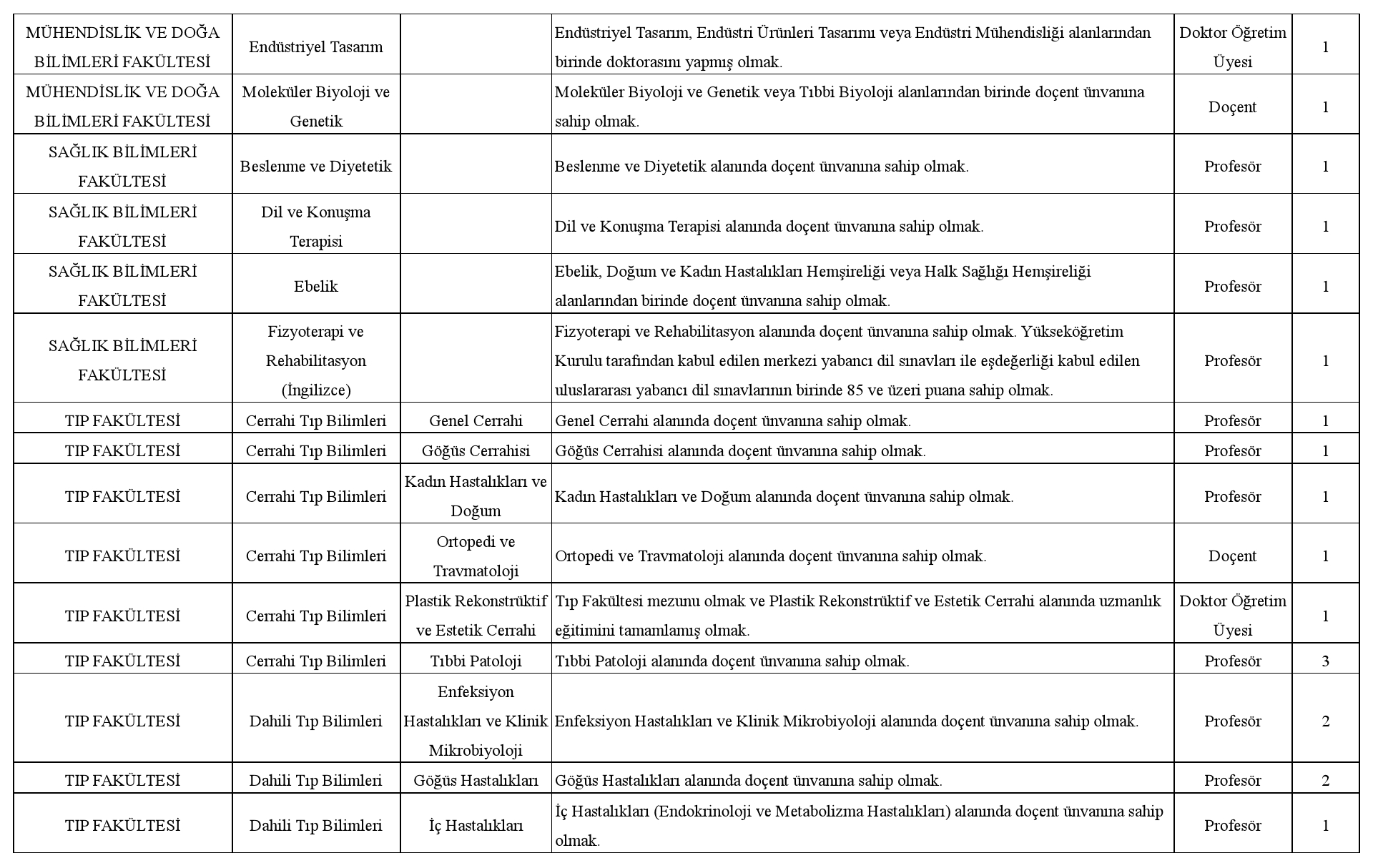 ÖĞRETİM ÜYESİ ALIM İLANI