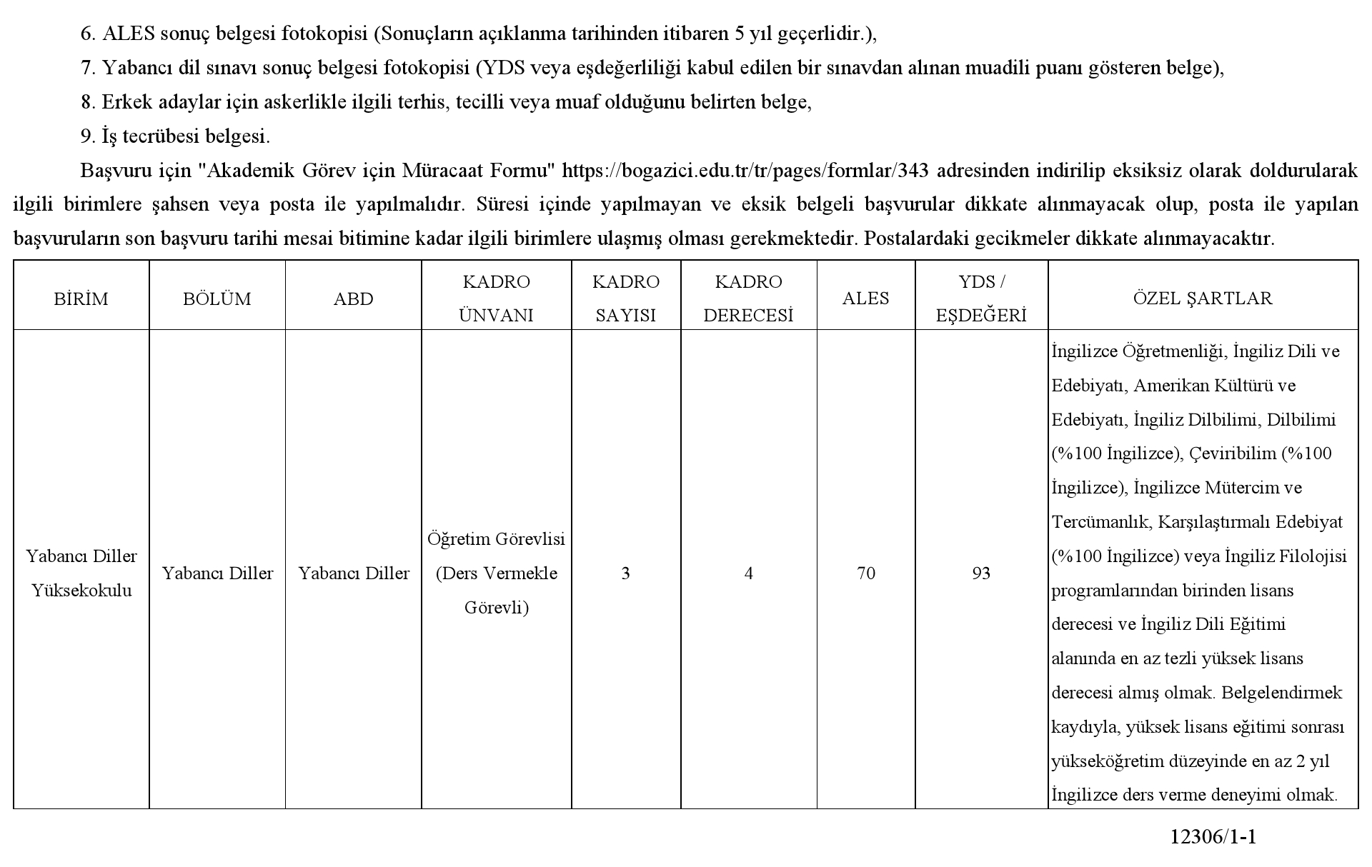 Boğaziçi Üniversitesi Öğretim Elemanı Alım İlanı