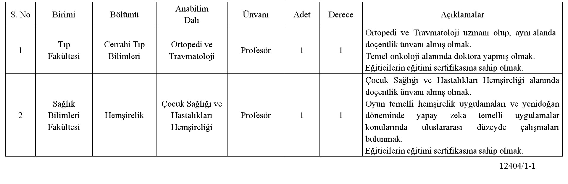 - Öğretim üyesi kadrolarına müracaat edecek adayların 2547 sayılı Kanun'un 26. maddelerinde belirtilen asgari koşulları sağlamış olmaları gerekmektedir.