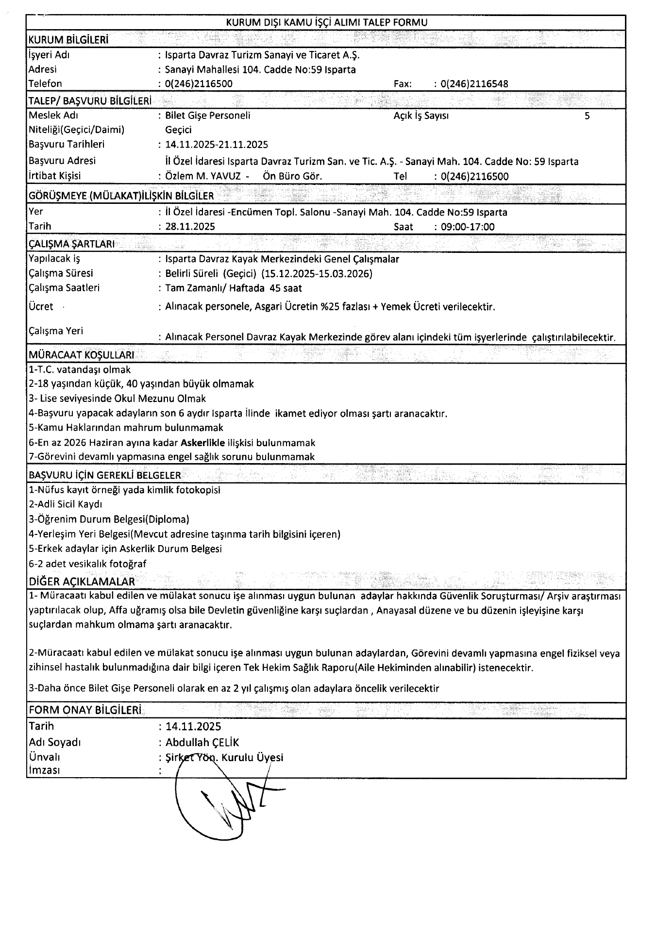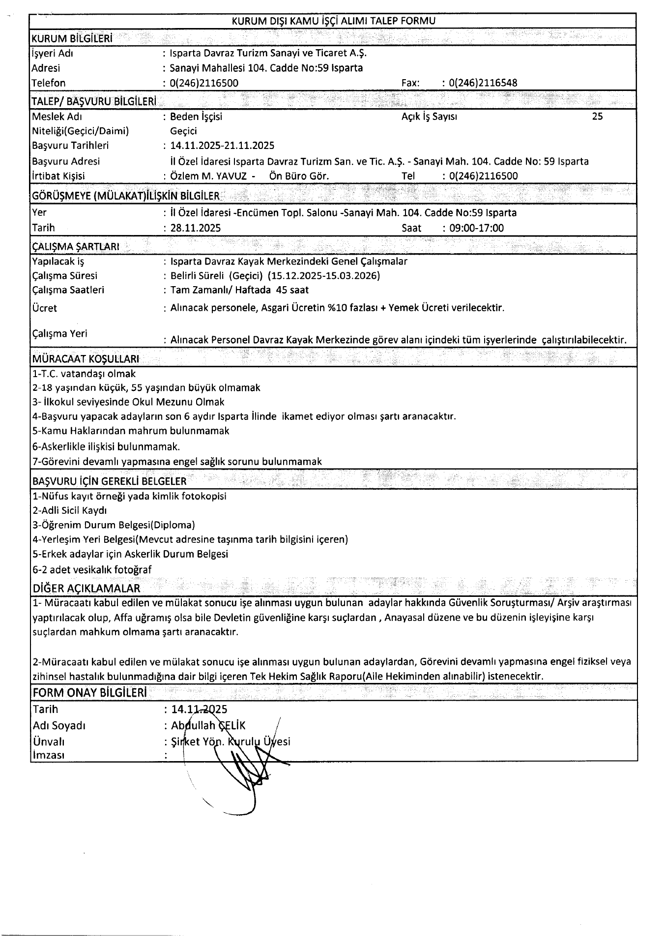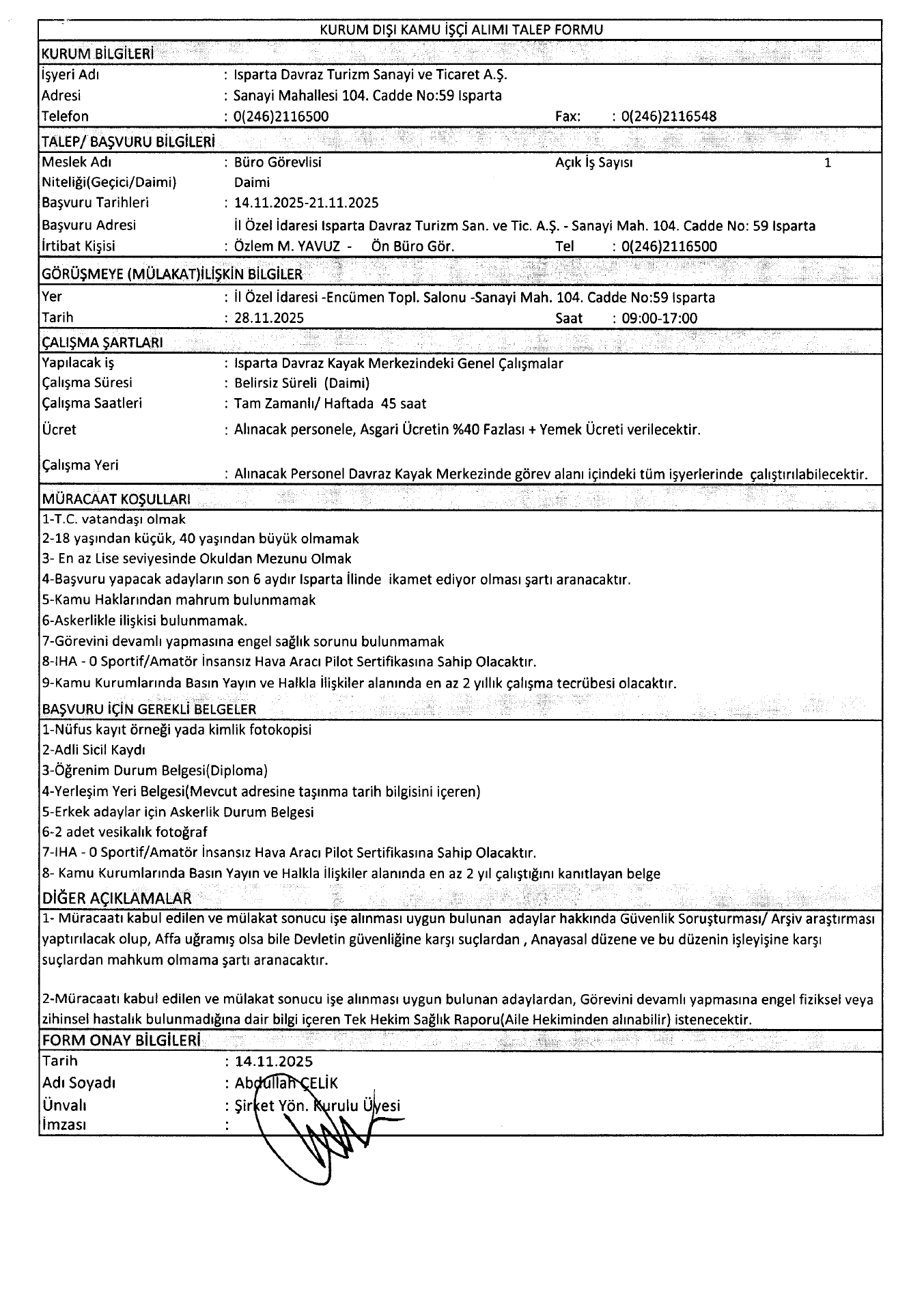 İlan Giriş : 19 Kasım 2025 23:36, Son Güncelleme : 19 Kasım 2025 23:36