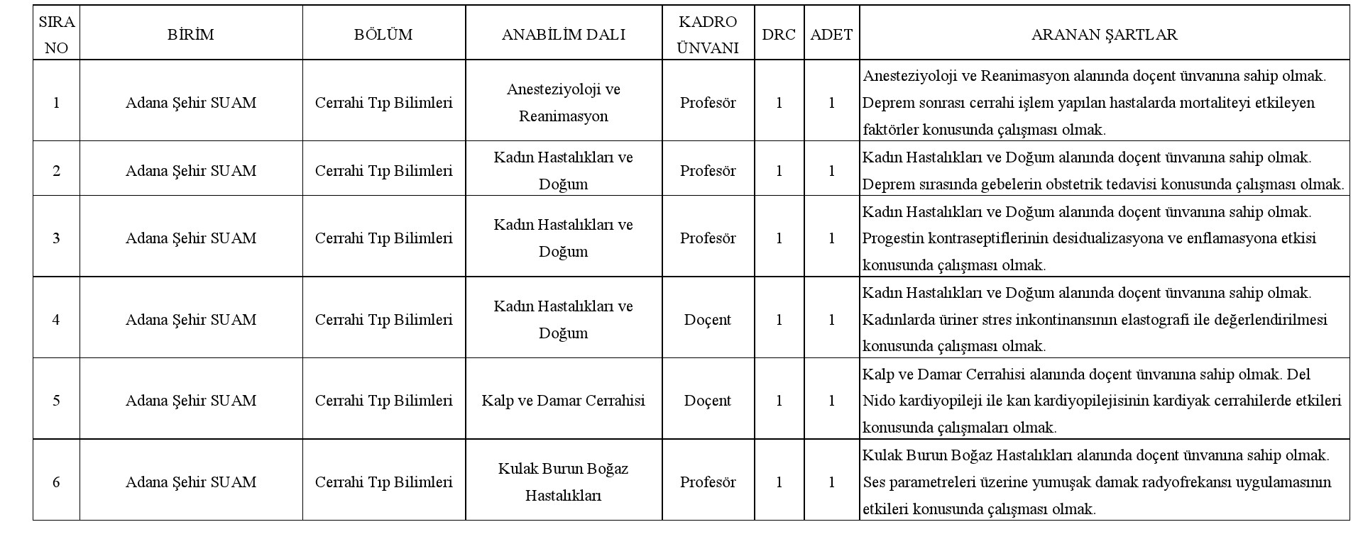 6- Adaylar bu ilandaki başvuru şartlarını sağladığı sadece bir kadroya başvurabilecektir. Birden fazla kadroya başvuru yapmış olan adayların başvuruları iptal edilecektir.