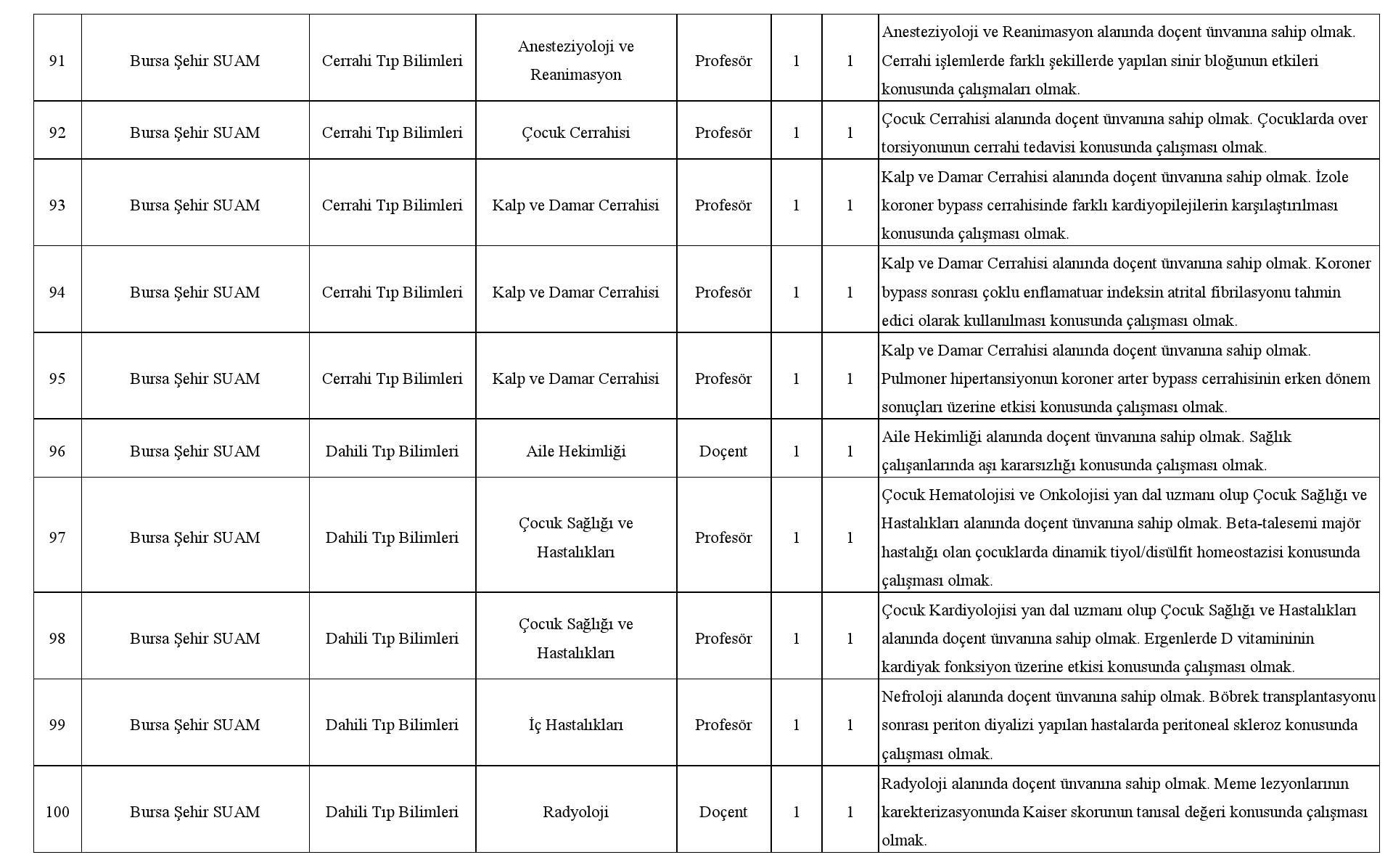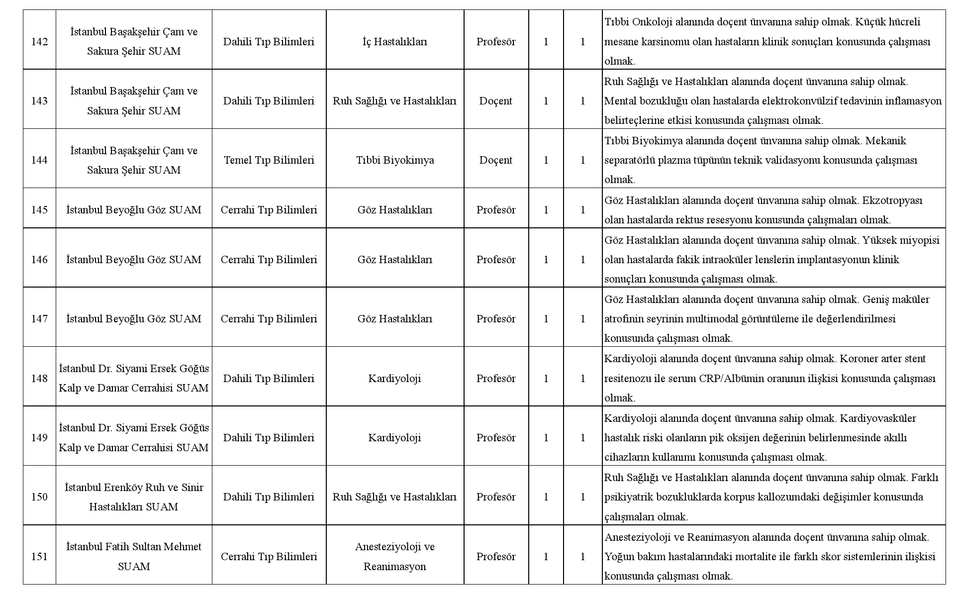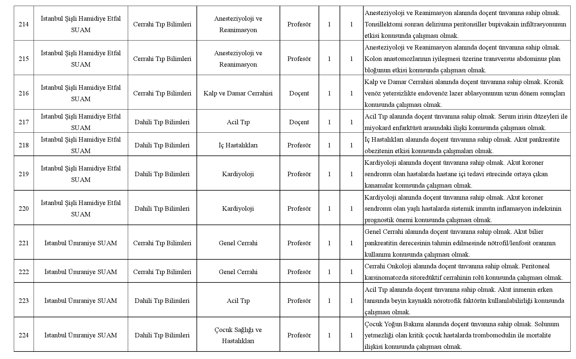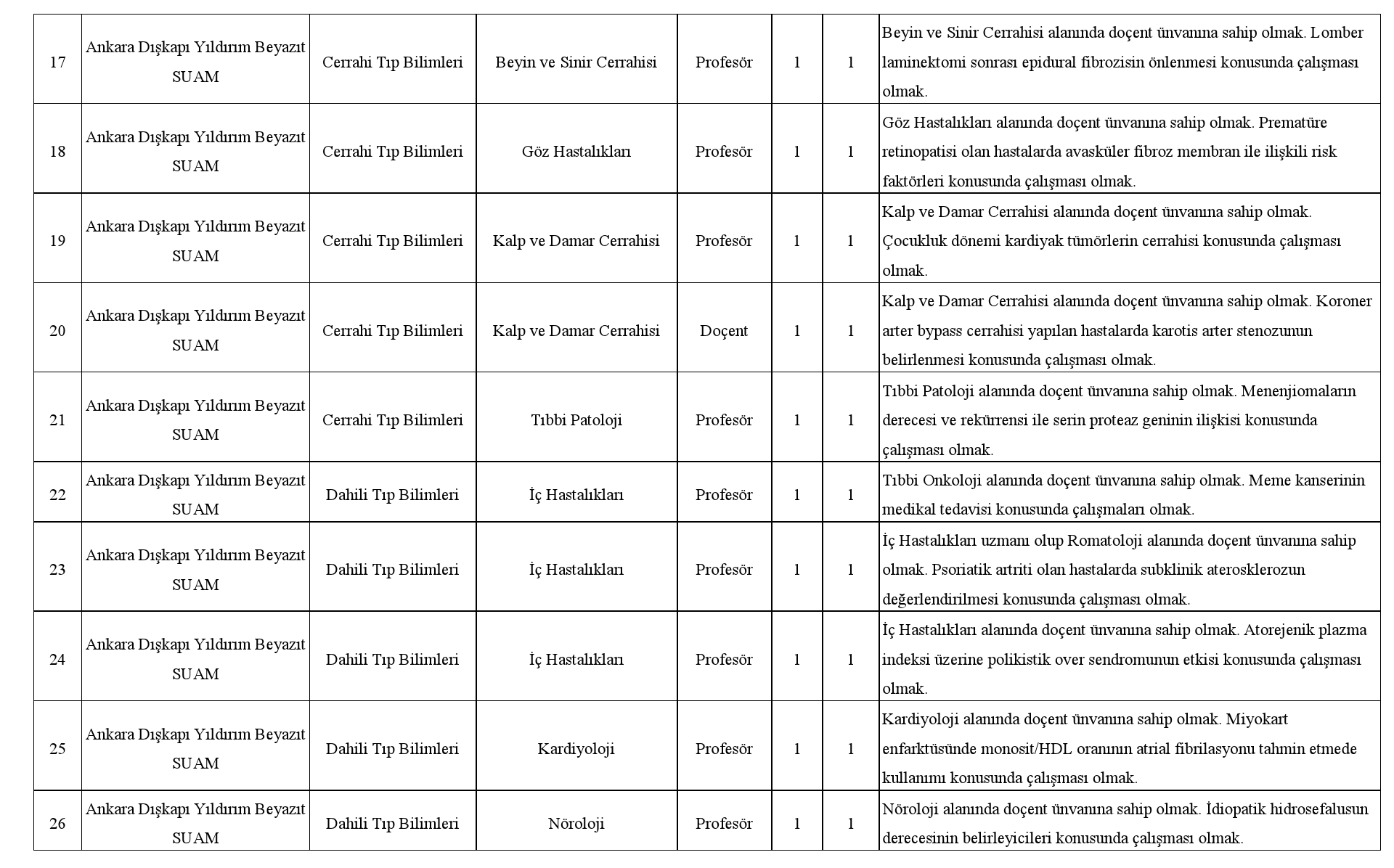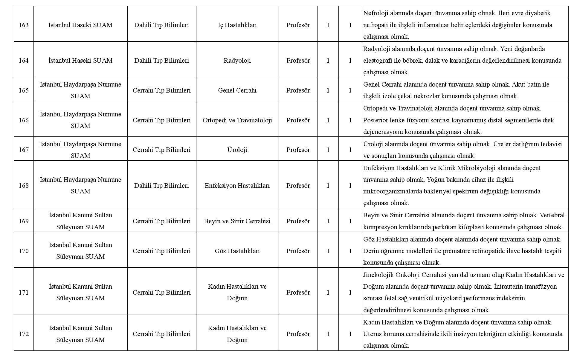 Profesör kadrosu daimi statüde olup başvuracak adayların "Başlıca Araştırma Eseri" ile birlikte başvurusunu aşağıda belirtilen açıklamaya göre ilanın yayım tarihinden itibaren 15 gün içinde online olarak yapmaları gerekmektedir.