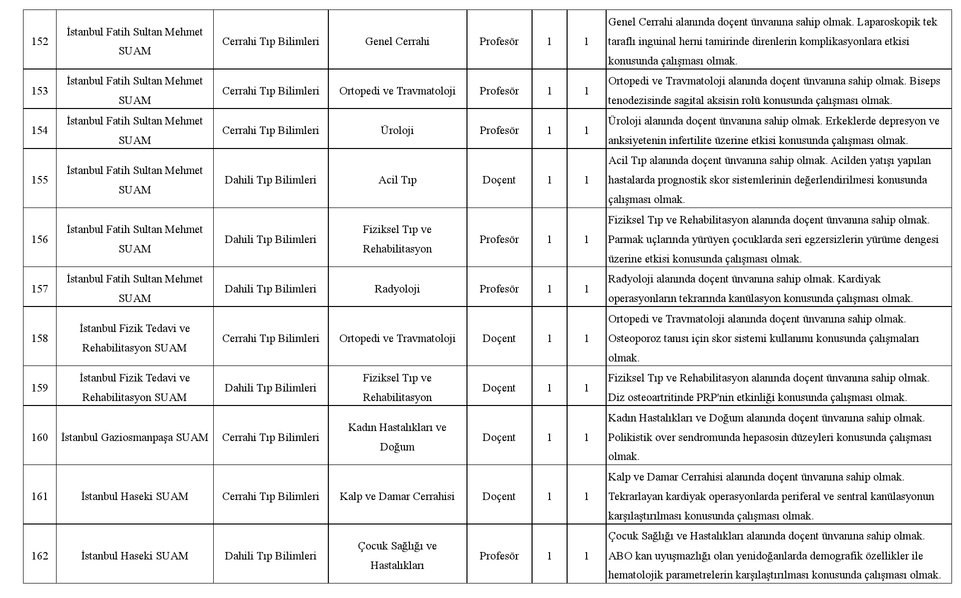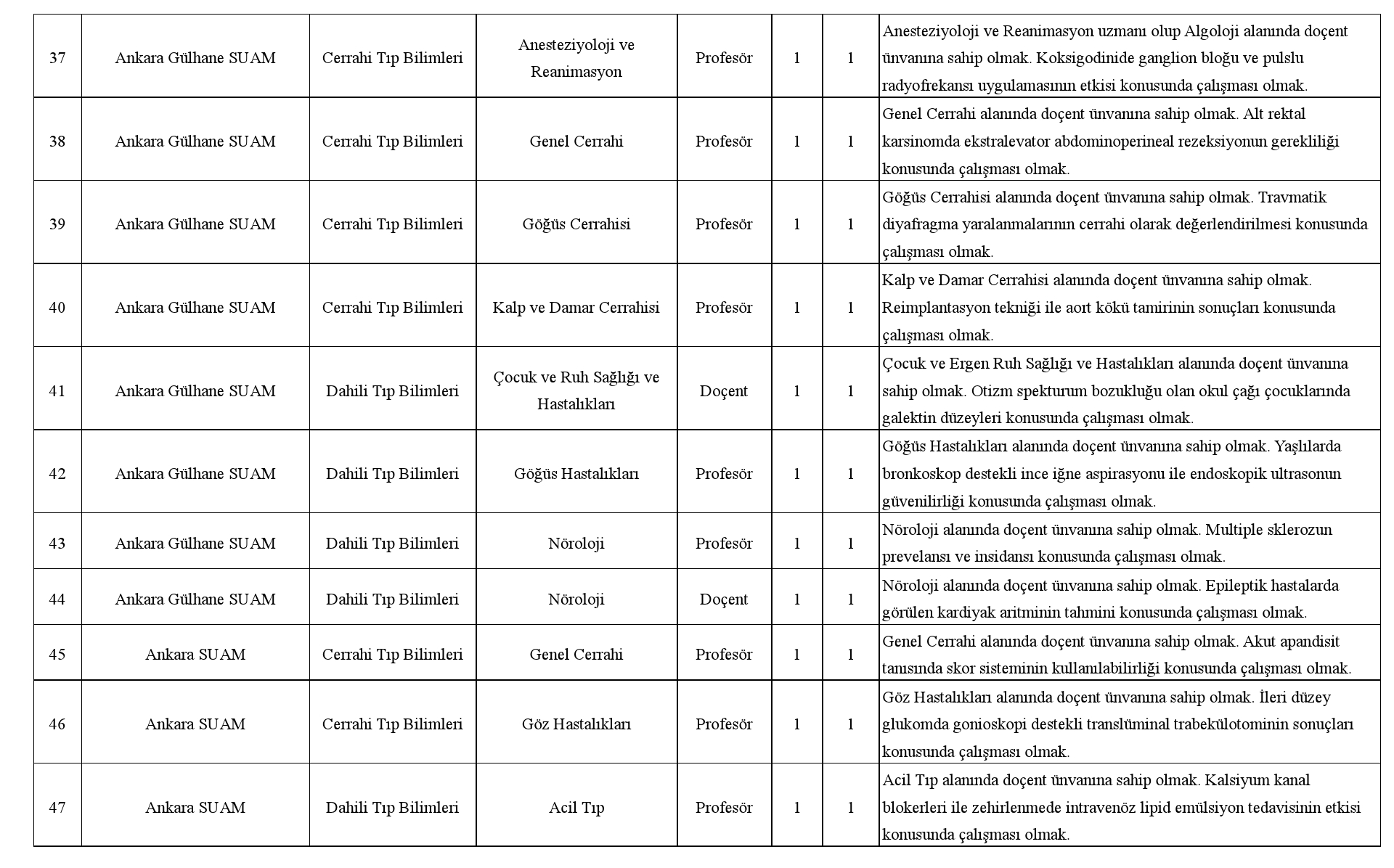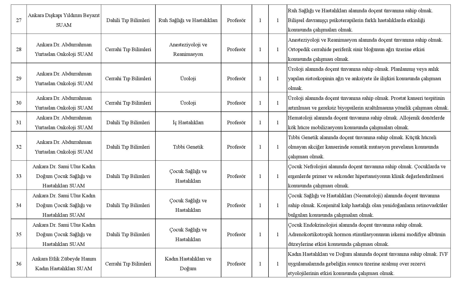 Üniversitemizin aşağıda belirtilen birimlerine, 02.11.2018 tarih ve 30583 sayılı Resmi Gazete'de yayımlanan Devlet Yükseköğretim Kurumlarında Öğretim Elemanı Norm Kadrolarının Belirlenmesine ve Kullanılmasına İlişkin Yönetmelik hükümleri, 2547 sayılı Yükseköğretim Kanunu, Öğretim Üyeliğine Yükseltilme ve Atanma Yönetmeliği, 657 sayılı Devlet Memurları Kanunu'nun 48. maddesi hükümleri ve Sağlık Bilimleri Üniversitesi Öğretim Üyeliğine Yükseltilme ve Atanma Yönergesi hükümleri uyarınca Öğretim Üyesi alınacaktır. İlan edilen kadrolara uygun olmadığı anlaşılan başvurular geçersiz sayılacaktır.