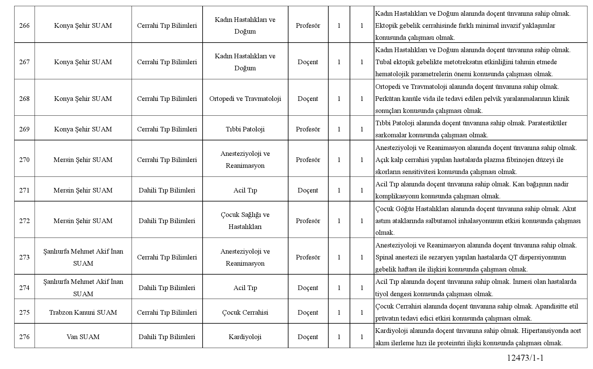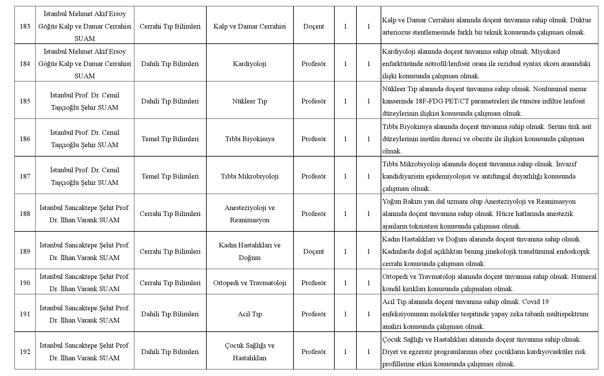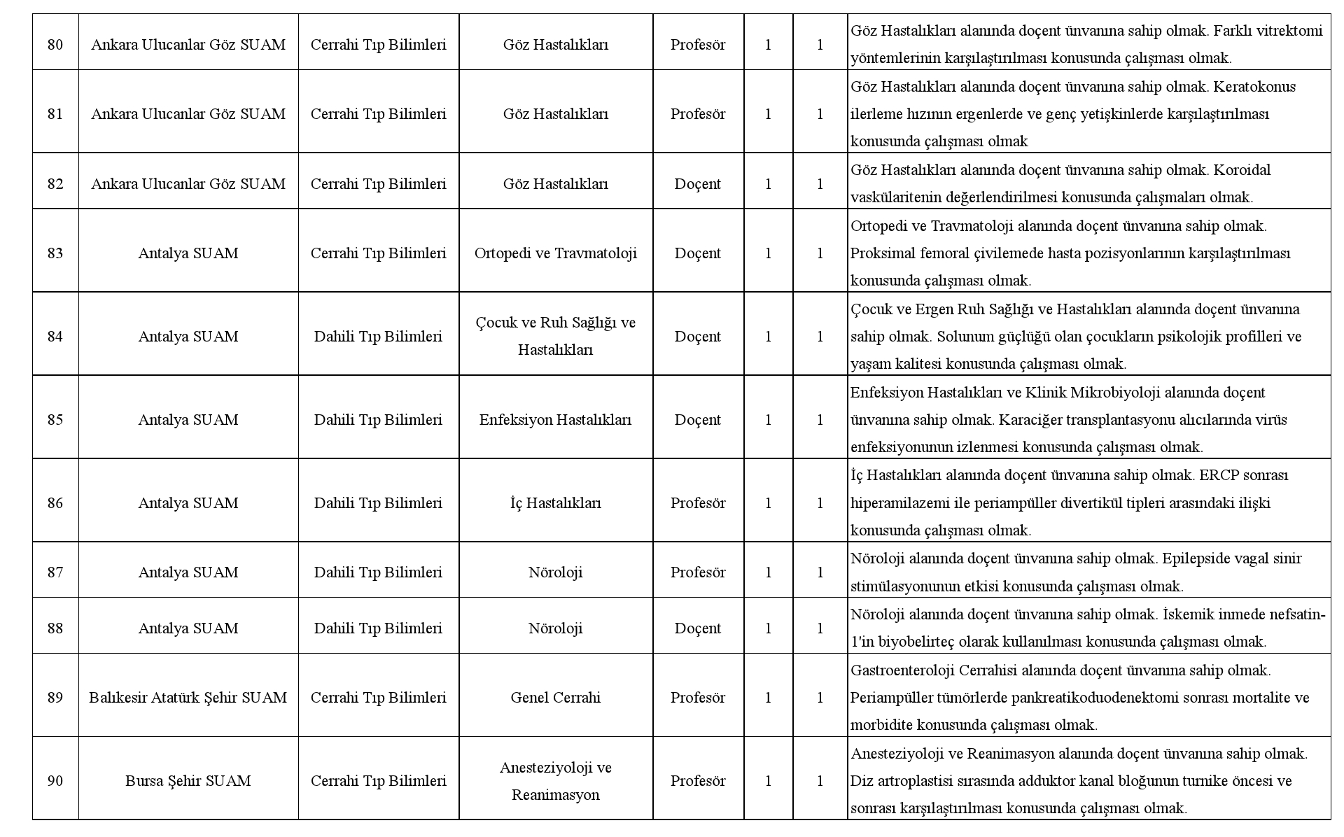 Üniversitemizin aşağıda belirtilen birimlerine, 02.11.2018 tarih ve 30583 sayılı Resmi Gazete'de yayımlanan Devlet Yükseköğretim Kurumlarında Öğretim Elemanı Norm Kadrolarının Belirlenmesine ve Kullanılmasına İlişkin Yönetmelik hükümleri, 2547 sayılı Yükseköğretim Kanunu, Öğretim Üyeliğine Yükseltilme ve Atanma Yönetmeliği, 657 sayılı Devlet Memurları Kanunu'nun 48. maddesi hükümleri ve Sağlık Bilimleri Üniversitesi Öğretim Üyeliğine Yükseltilme ve Atanma Yönergesi hükümleri uyarınca Öğretim Üyesi alınacaktır. İlan edilen kadrolara uygun olmadığı anlaşılan başvurular geçersiz sayılacaktır.