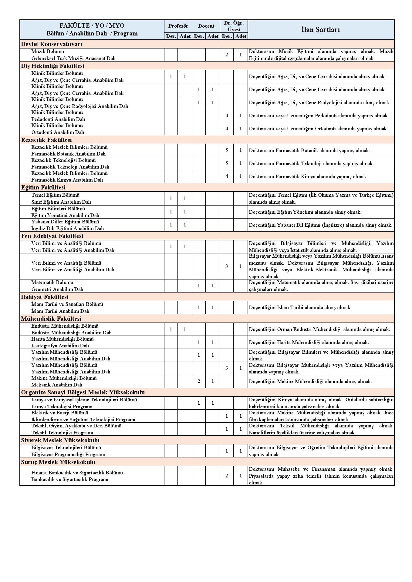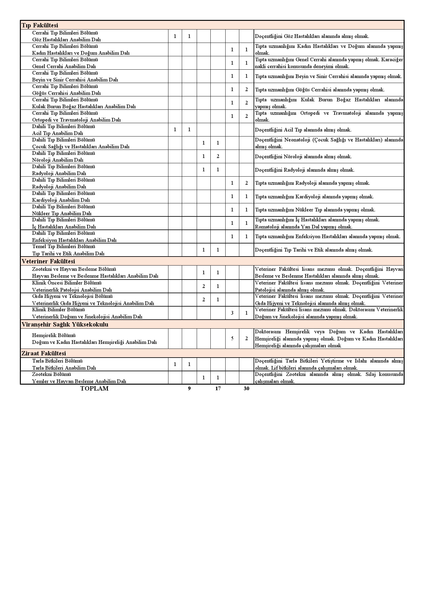 9) 2547 sayılı Kanunun Ek-38'inci maddesi uyarınca belirlenen % 30'luk kota kapsamında başvuru yapılabilecek Doktor Öğretim Üyesi kadrosu bulunmamaktadır.