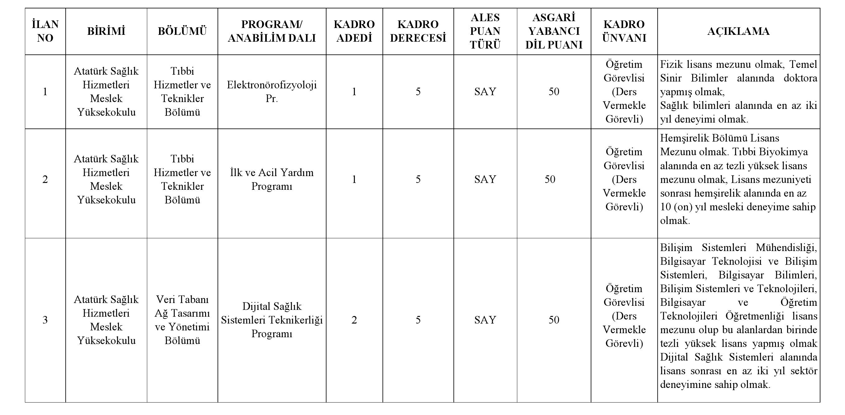 Üniversitemiz birimlerine Öğretim Üyesi Dışındaki Öğretim Elemanı Kadrolarına Yapılacak Atamalarda Uygulanacak Merkezi Sınav ile GirişSınavlarına İlişkin Usul ve Esaslar Hakkında Yönetmelik'in ilgili hükümleri uyarınca akademik personel alınacaktır.