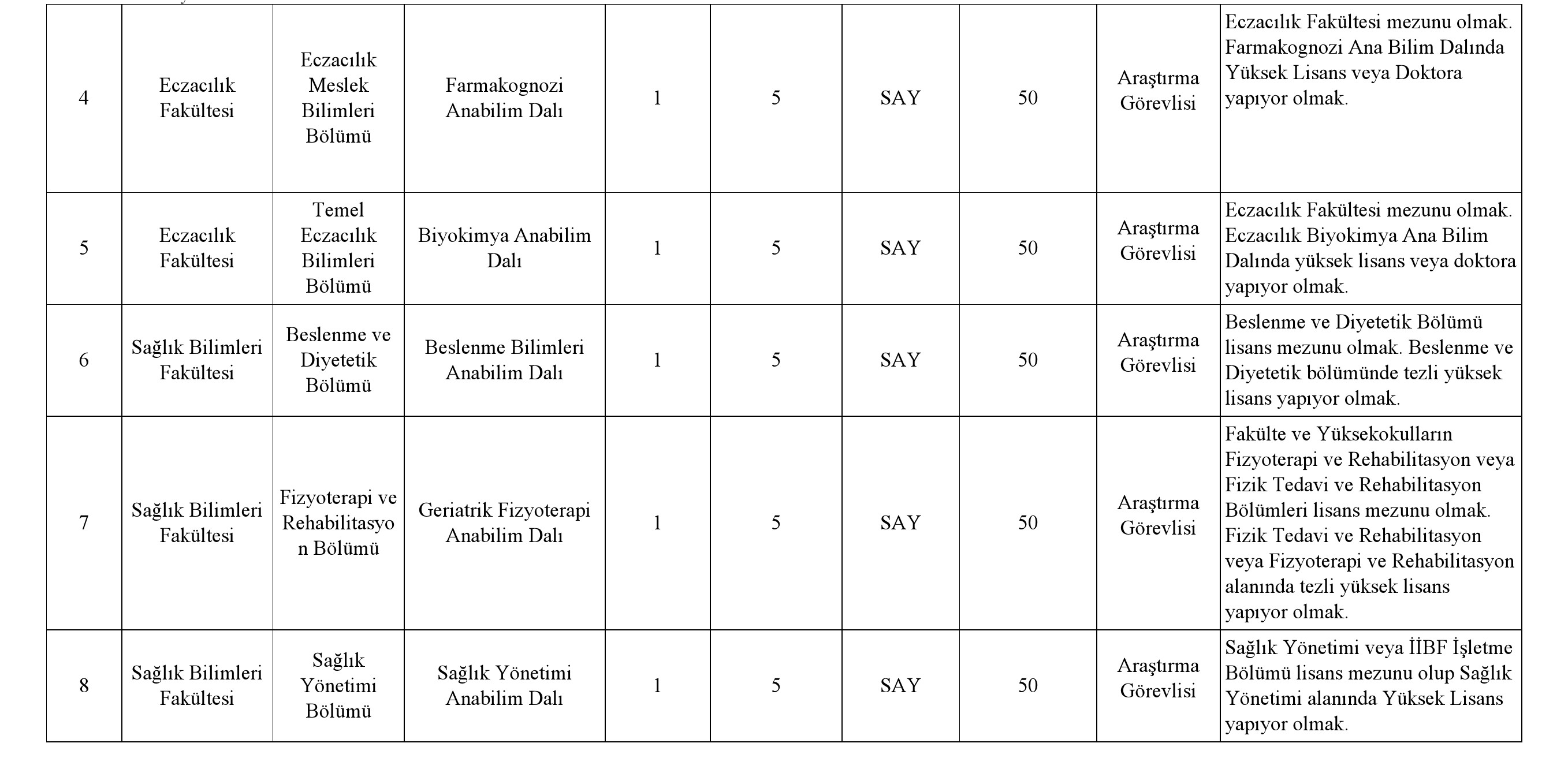 Afyonkarahisar Sağlık Bilimleri Üniversitesi Rektörlüğünden: