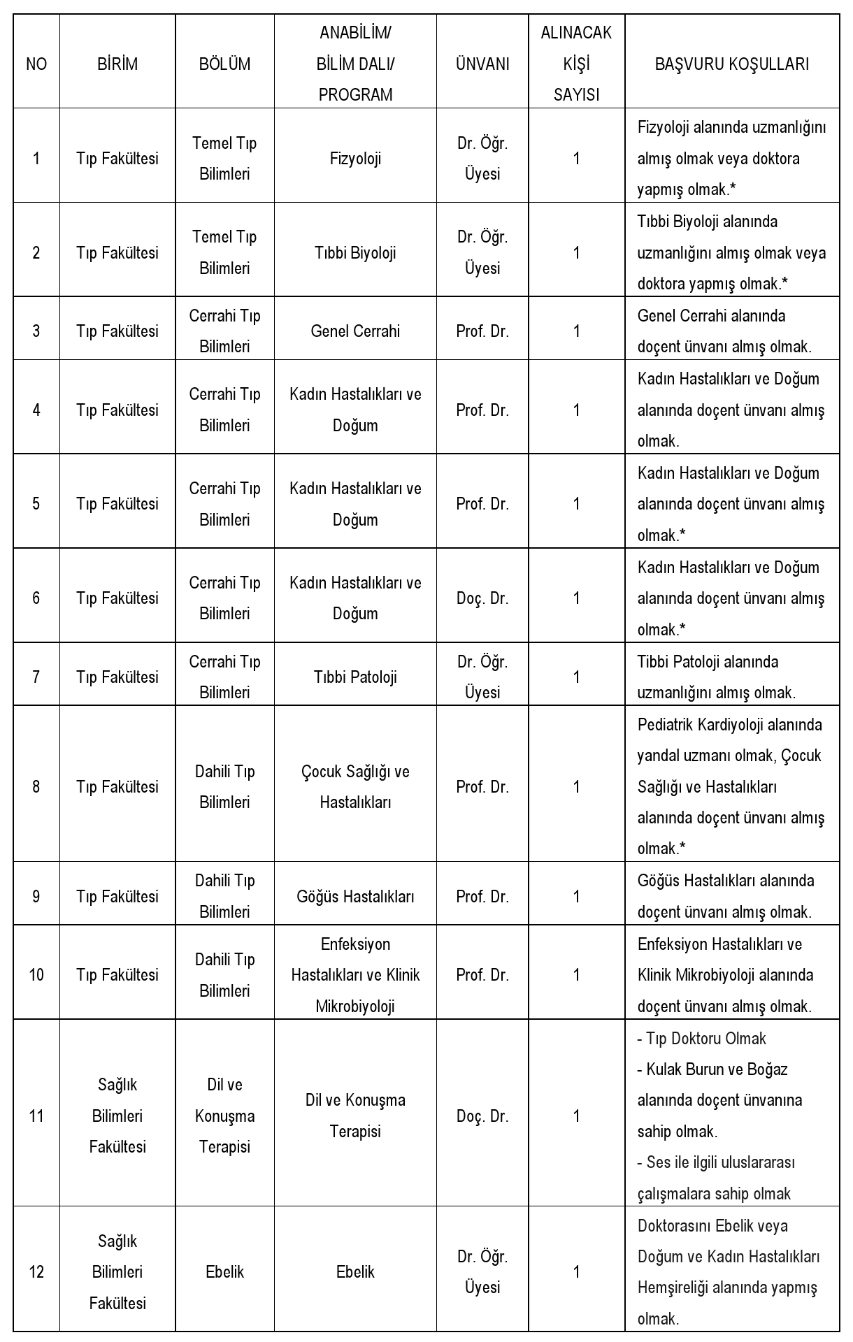 Doktor Öğretim Üyesi, Öğretim Görevlisi ve Araştırma Görevlisi kadrolarına müracaat edecek adayların ise Yönetmelik hükümleri uyarınca ilgili Fakülte Dekanlıklarına, Yüksekokul Müdürlüklerine şahsen veya posta yoluyla başvurmaları gerekmektedir.