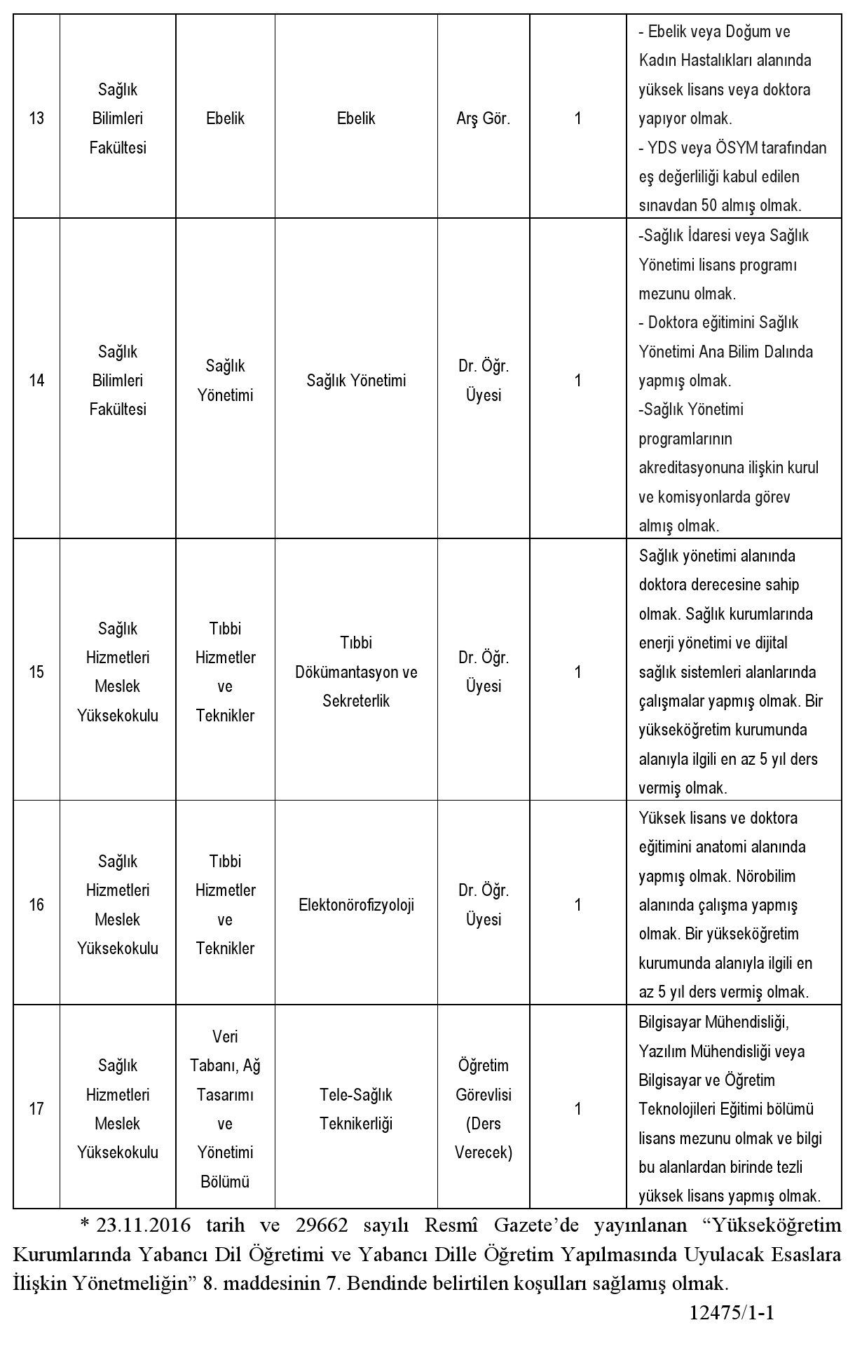 13- Postadaki gecikmeler ve ilanda belirtilen süreler içinde yapılmayan başvurular ve eksik belgeli başvurular dikkate alınmayacaktır.
