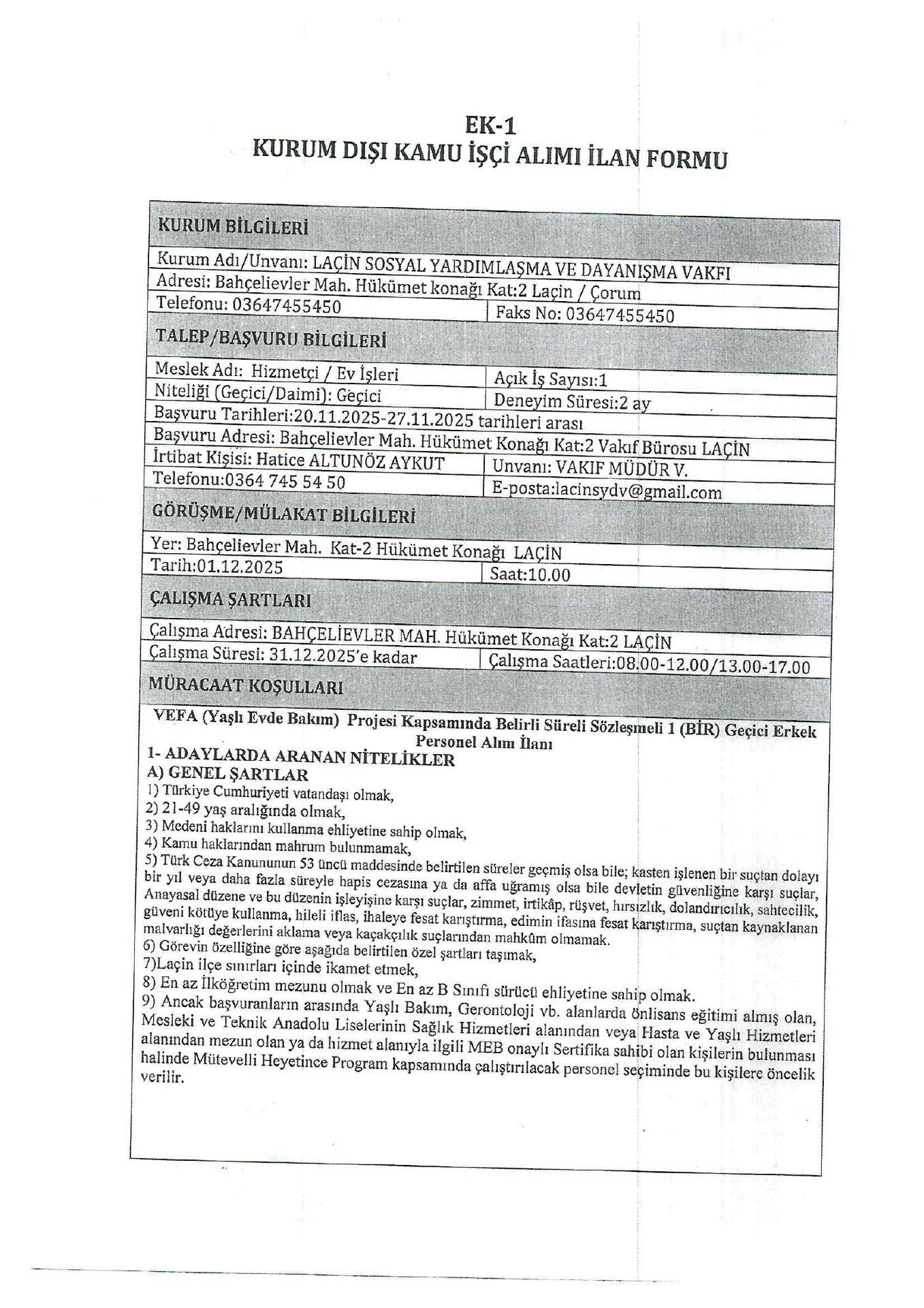 Ana sayfaSYDV İlanlarıAna sayfaGeçici İşçi İlanları Çorum Laçin SYDV Geçici 1 İşçi Alacak Çorum Laçin SYDV Geçici 1 İşçi Alacak. Son başvuru tarihi 27 Kasım 2025 Kaynak : İşkur İlan Giriş : 21 Kasım 2025 23:55, Son Güncelleme : 21 Kasım 2025 23:53 Yazdır Yorumlar (0) Abone Ol