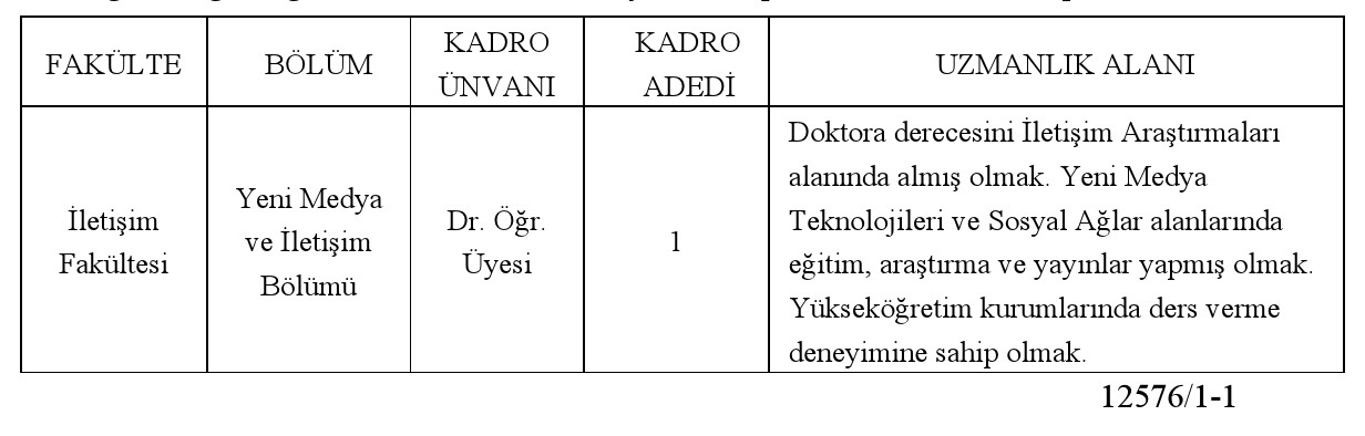 ÖĞRETİM ÜYESİ ALIM İLANI