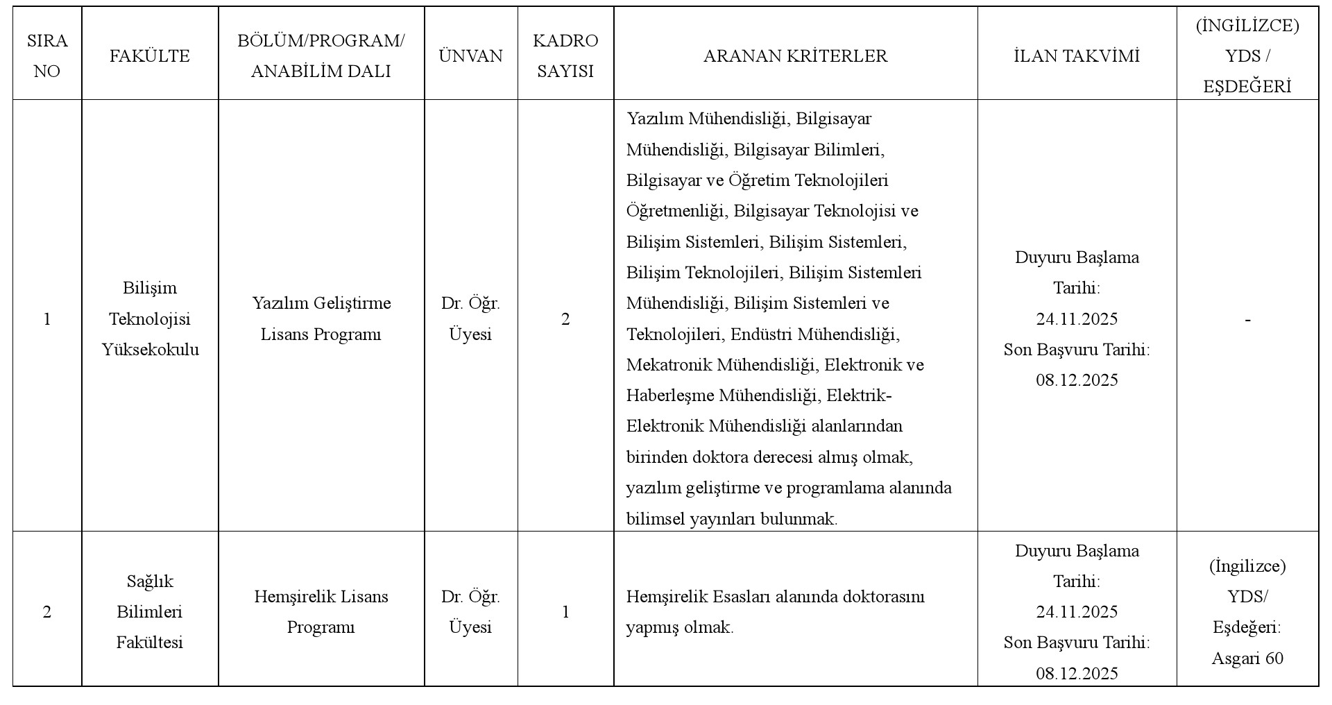 ÖĞRETİM ÜYESİ ALIM İLANI