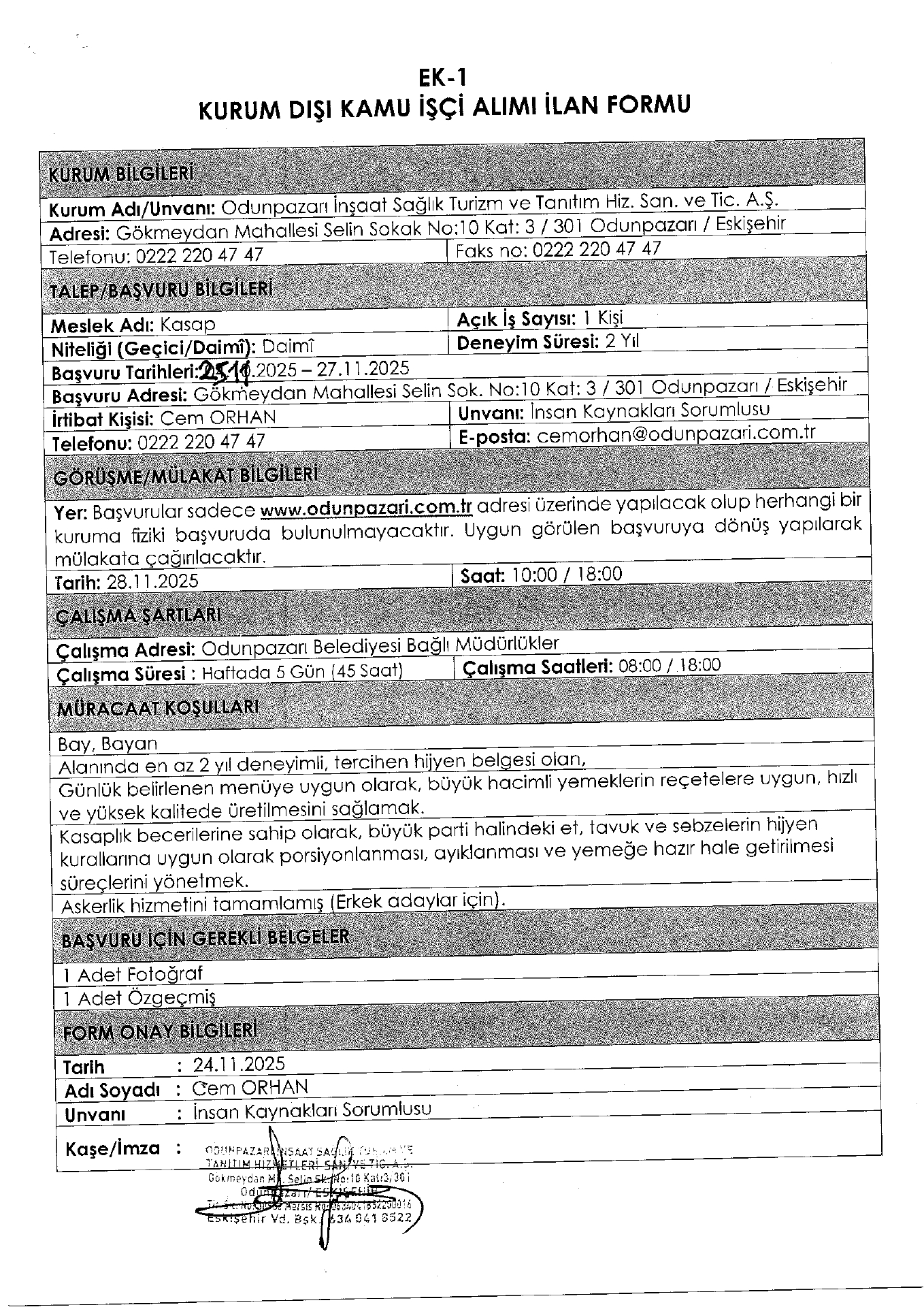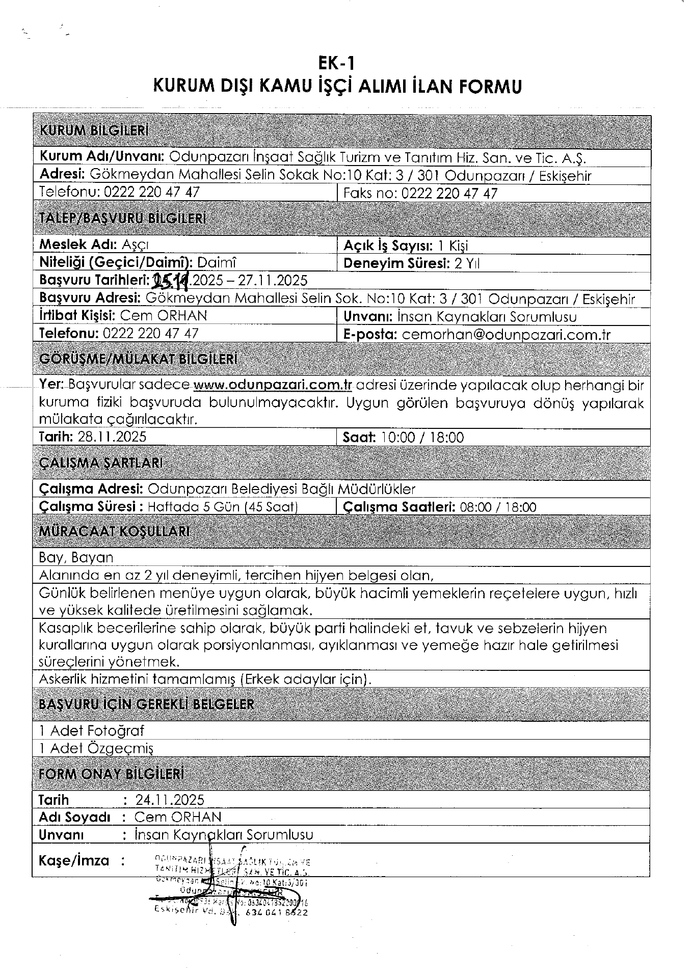 Ana sayfaDaimi İşçi İlanları Eskişehir Odunpazarı İnşaat 2 İşçi Alacak Eskişehir Odunpazarı İnşaat 2 İşçi Alacak. Son başvuru tarihi 27 Kasım 2025 Kaynak : İşkur İlan Giriş : 26 Kasım 2025 00:45, Son Güncelleme : 26 Kasım 2025 01:29 Yazdır Yorumlar (0) Abone Ol