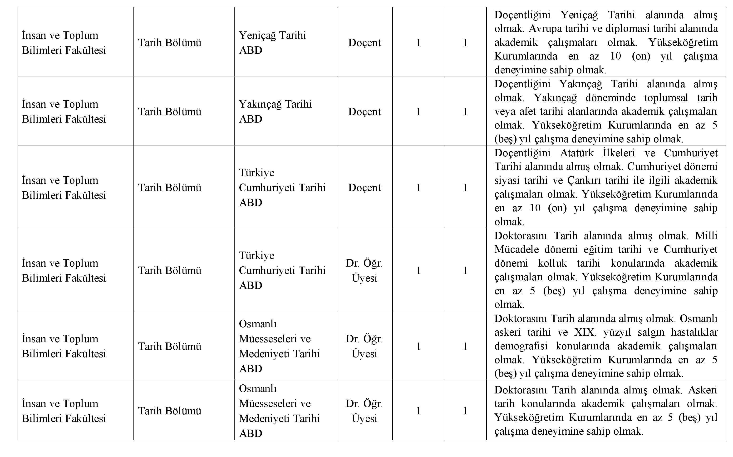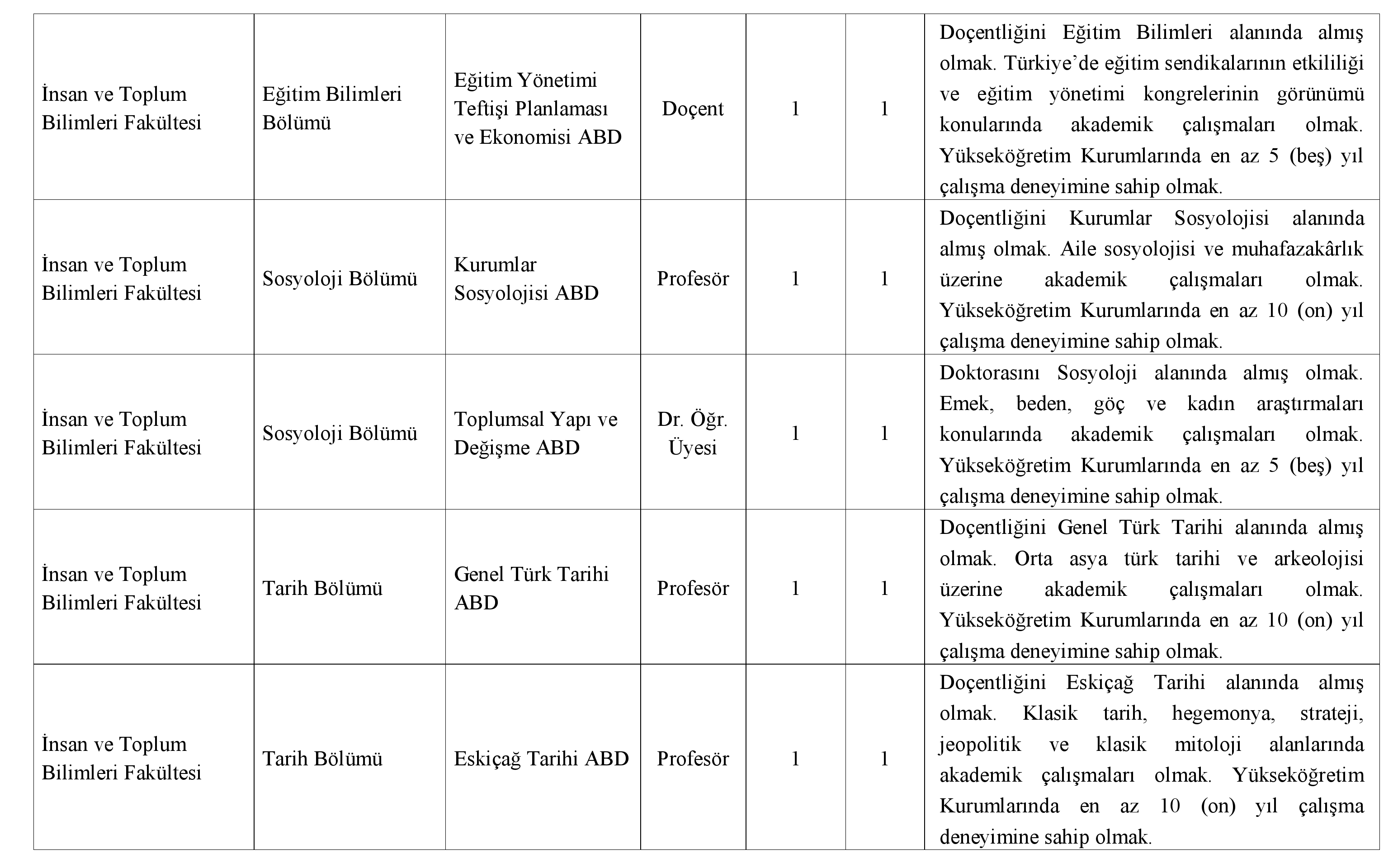 7. Profesör ve Doçent kadrosunda bulunan adaylar alt kadrolara müracaat edemezler.