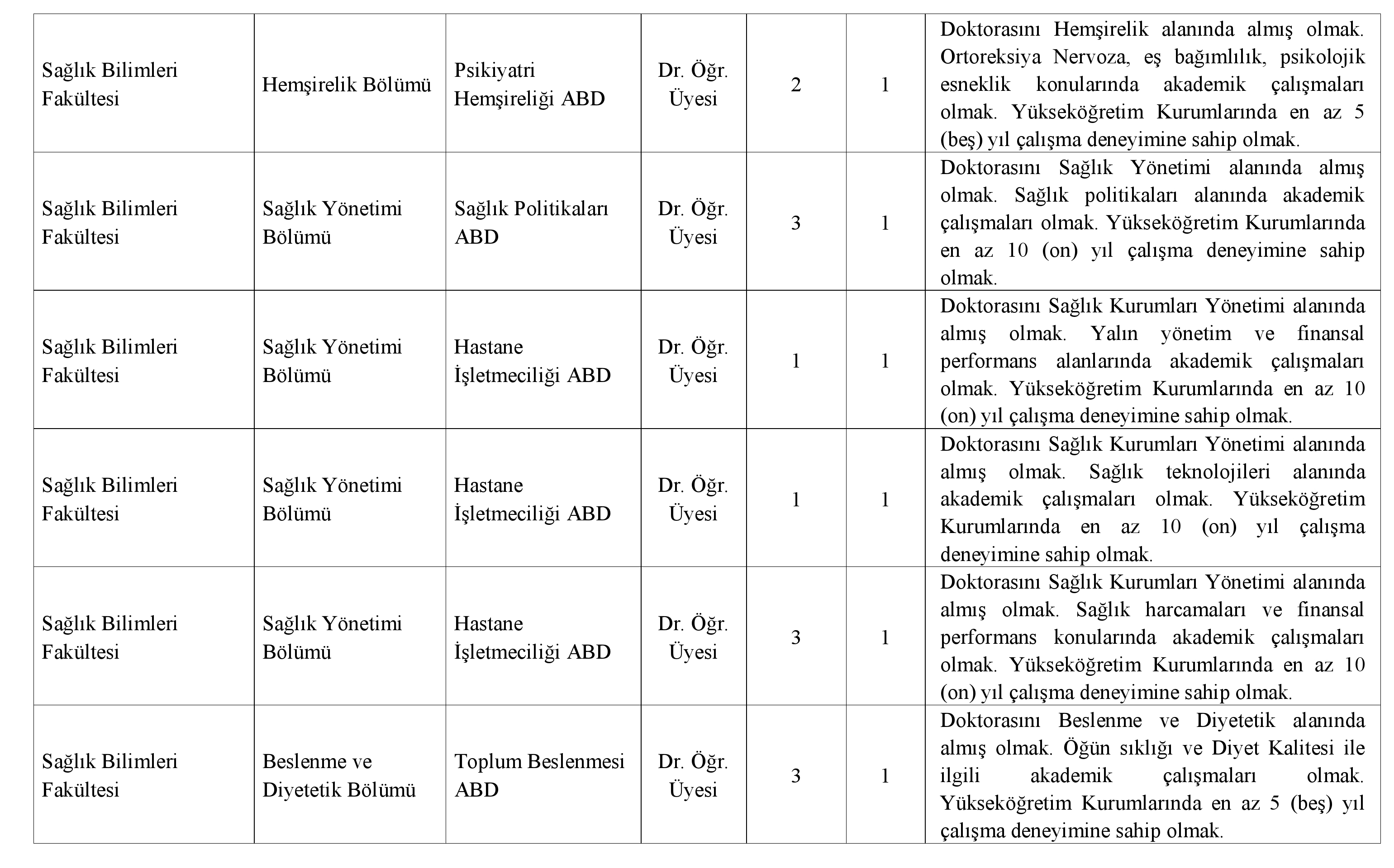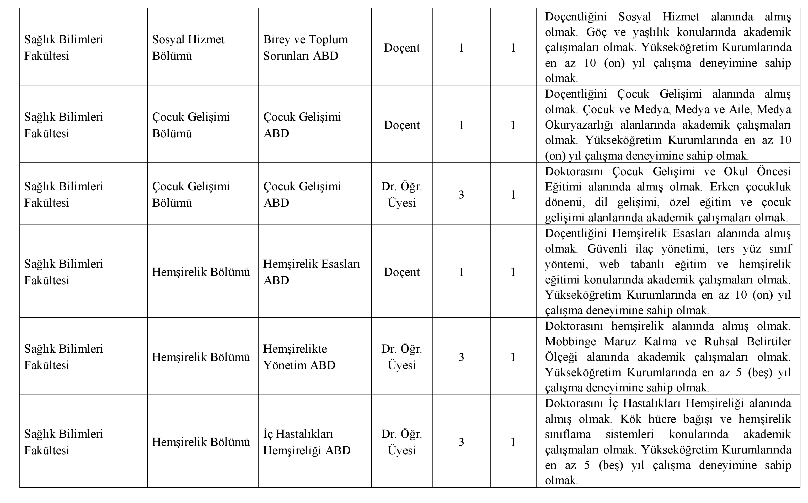ÖĞRETİM ÜYESİ KADROSUNA BAŞVURACAK ADAYLAR;