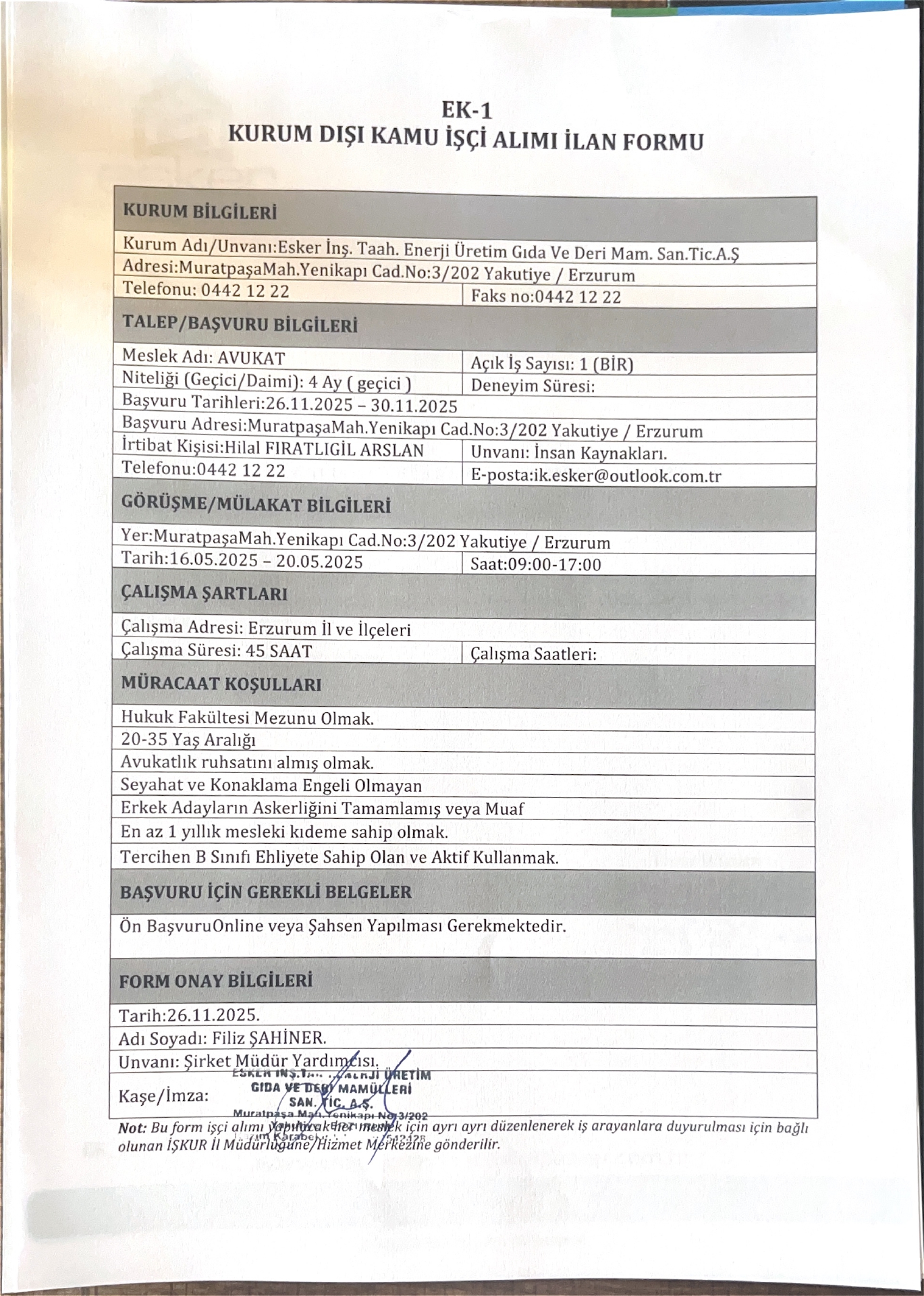 Ana sayfaGeçici İşçi İlanları Erzurum Esker İnşaat Geçici 1 İşçi Alacak Erzurum Esker İnşaat Geçici 1 İşçi Alacak. Son başvuru tarihi 30 Kasım 2025 Kaynak : İşkur İlan Giriş : 27 Kasım 2025 00:33, Son Güncelleme : 27 Kasım 2025 03:14 Yazdır Yorumlar (0) Abone Ol
