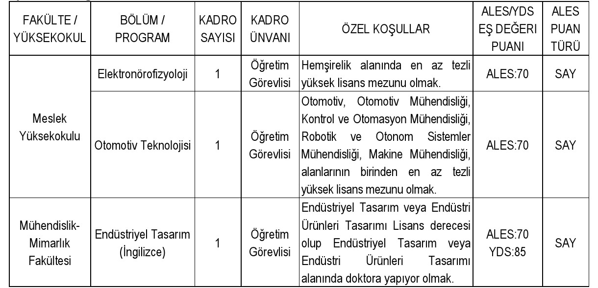 ÖĞRETİM GÖREVLİSİ ALIM İLANI