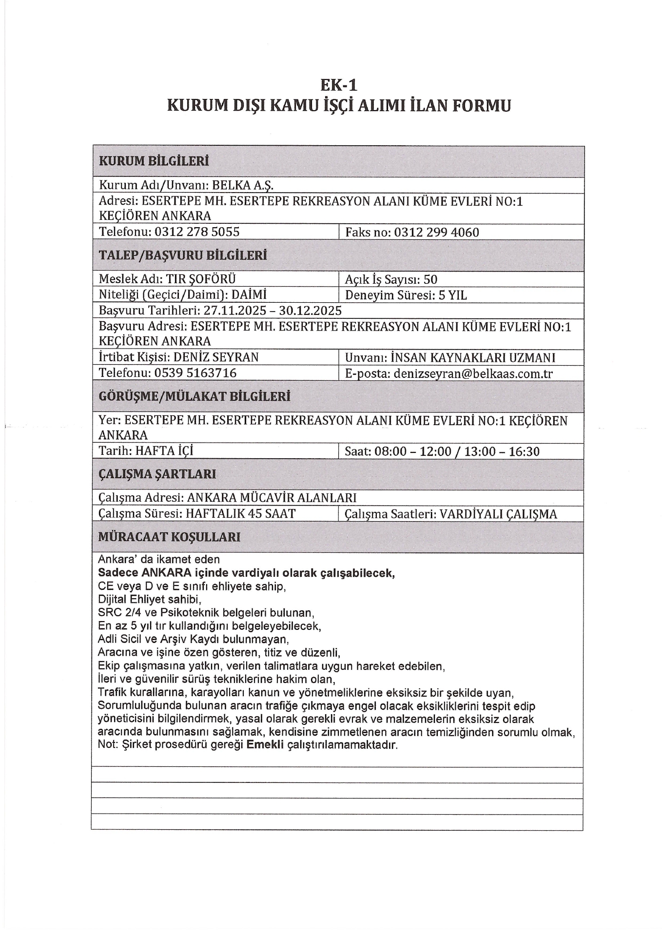 Ana sayfaDaimi İşçi İlanlarıAna sayfaEngelli İlanları Ankara Belka AŞ. 50 İşçi Alacak Ankara Belka AŞ. 50 İşçi Alacak. Son başvuru tarihi 30 Aralık 2025 Kaynak : İşkur İlan Giriş : 28 Kasım 2025 00:30, Son Güncelleme : 28 Kasım 2025 03:56 Yazdır Yorumlar (0) Abone Ol