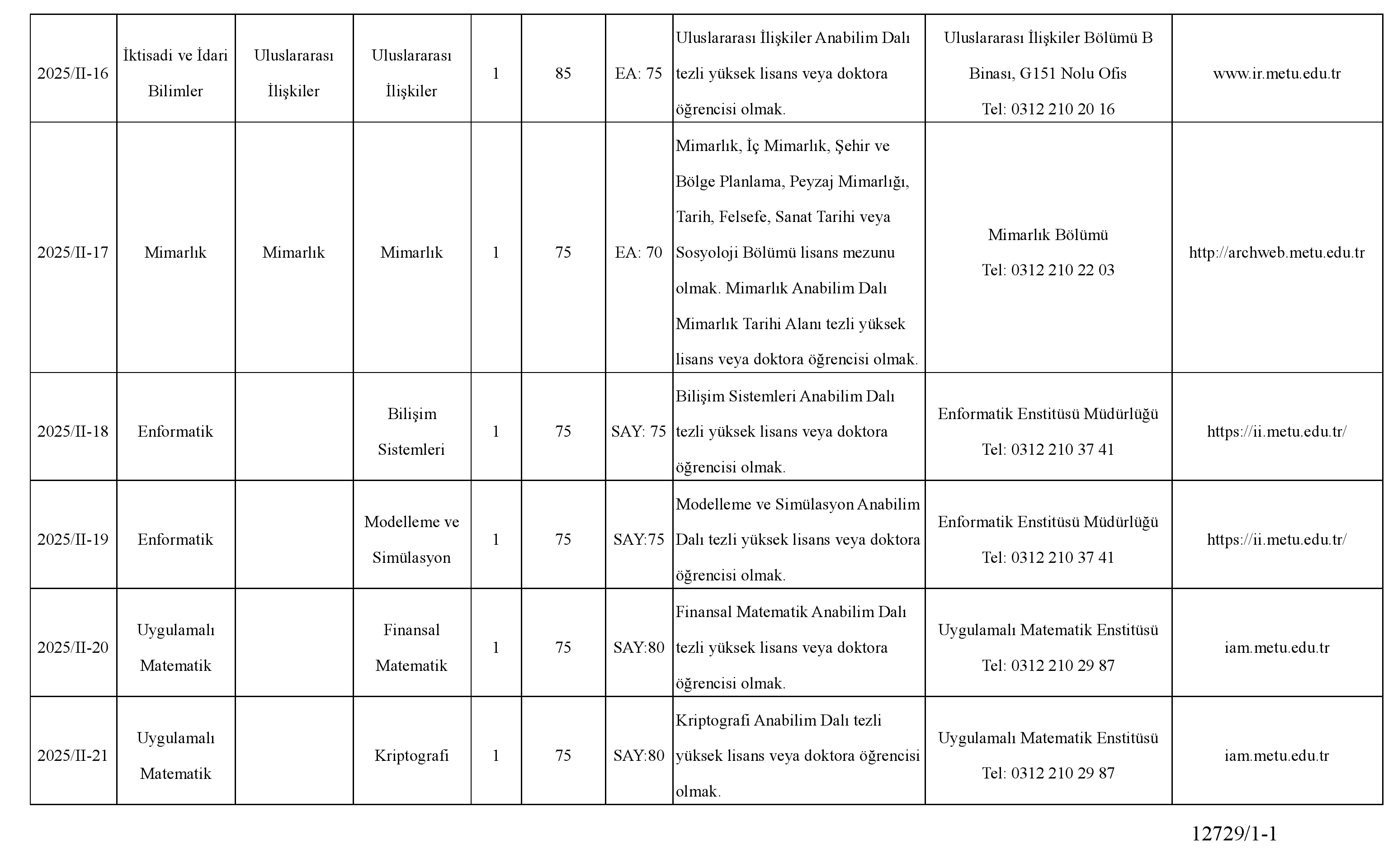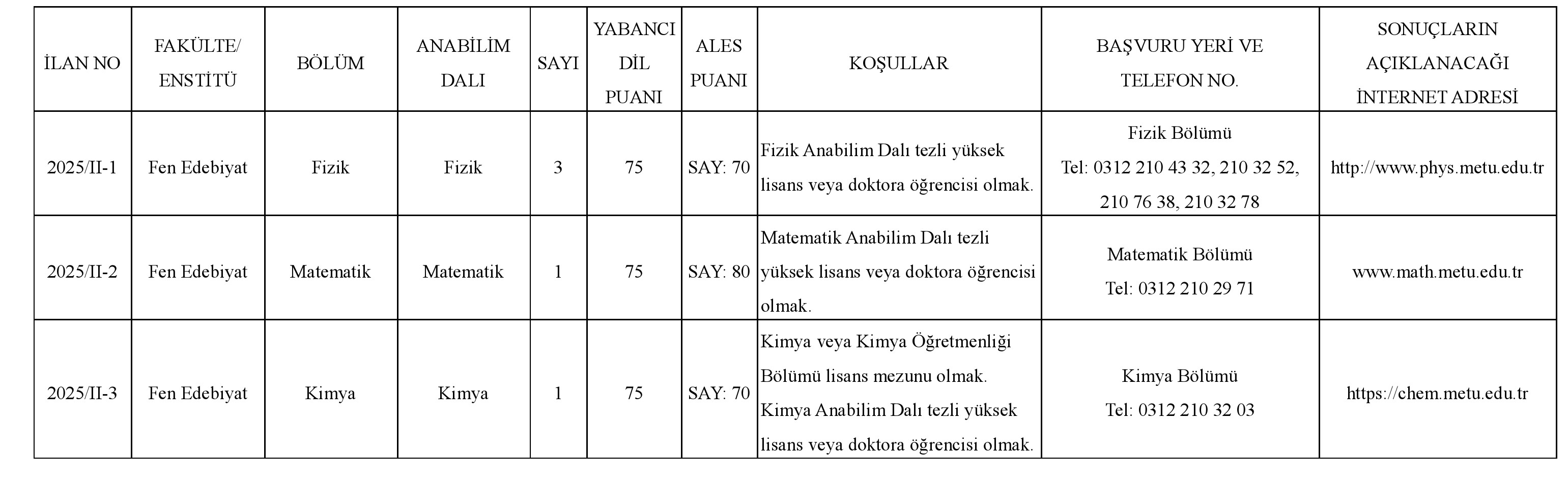 Orta Doğu Teknik Üniversitesi Rektörlüğünden: