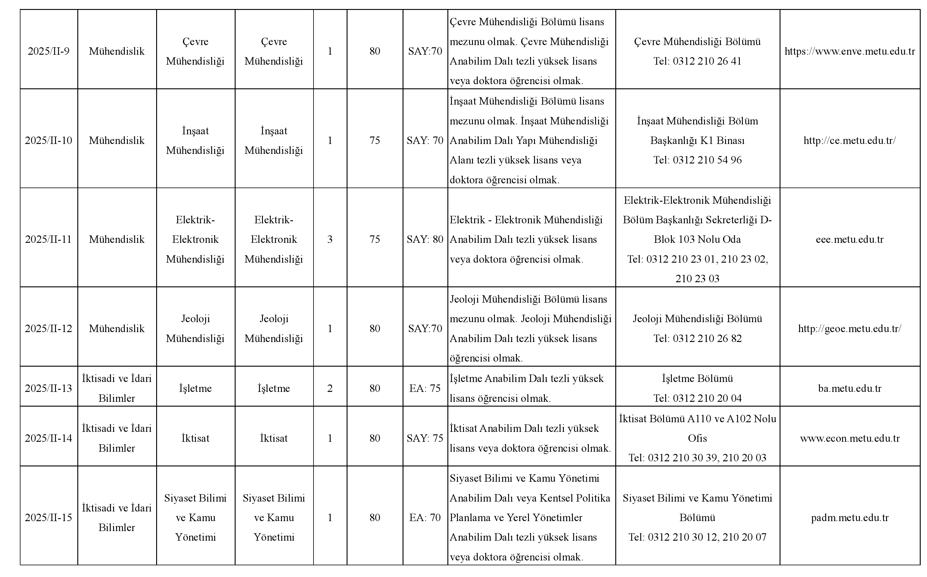 Orta Doğu Teknik Üniversitesi Öğretim Elemanı Alım İlanı. Son başvuru tarihi 15 Aralık 2025