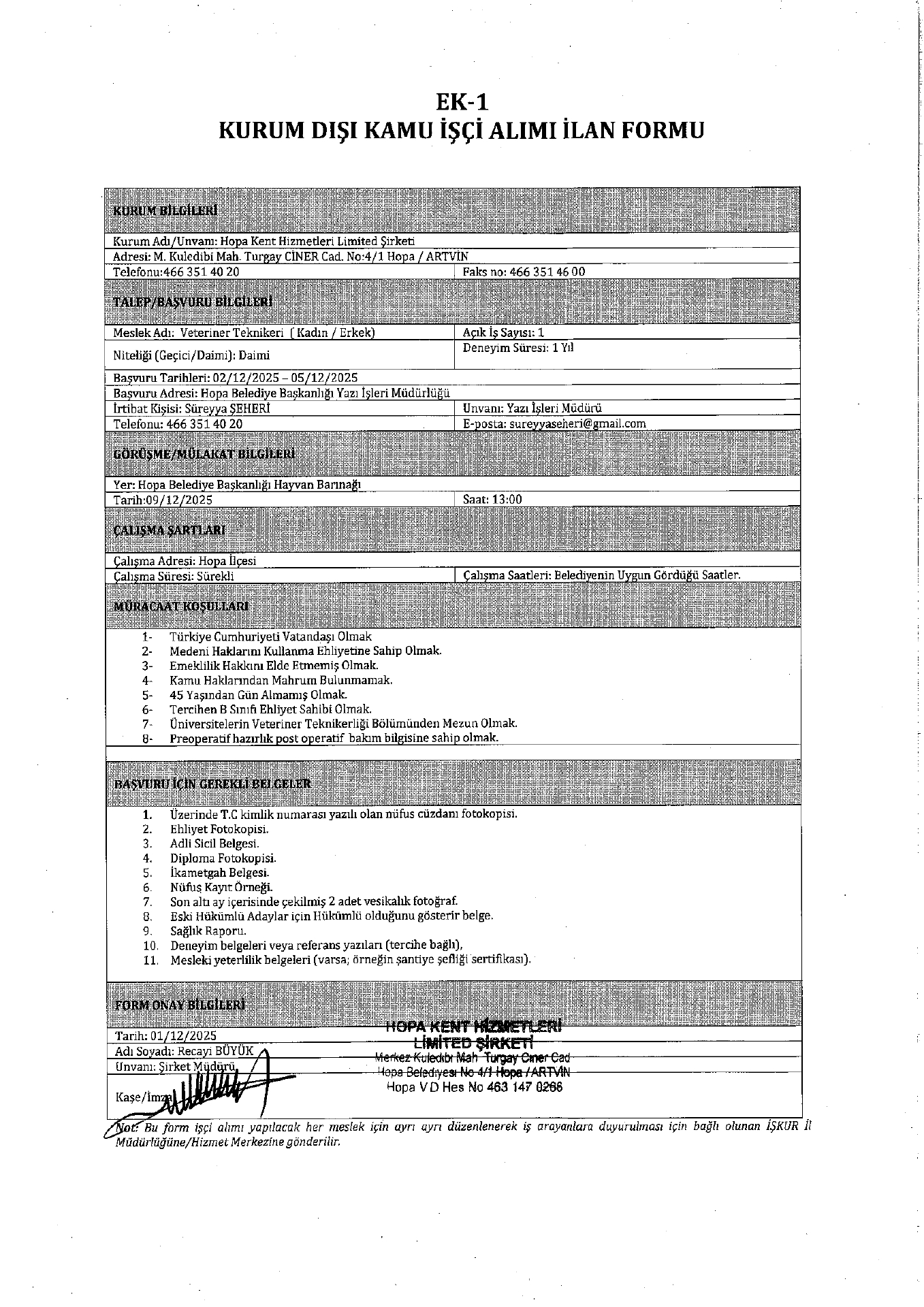 Ana sayfaDaimi İşçi İlanları Artvin Hopa Kent Hizmetleri 1 İşçi Alacak Artvin Hopa Kent Hizmetleri 1 İşçi Alacak. Son başvuru tarihi 5 Aralık 2025 Kaynak : İşkur İlan Giriş : 02 Aralık 2025 23:11, Son Güncelleme : 02 Aralık 2025 23:30 Yazdır Yorumlar (0) Abone Ol