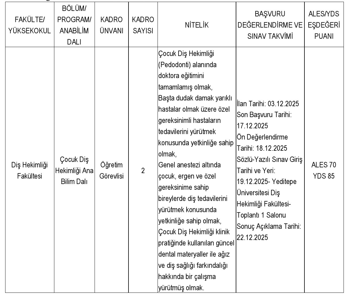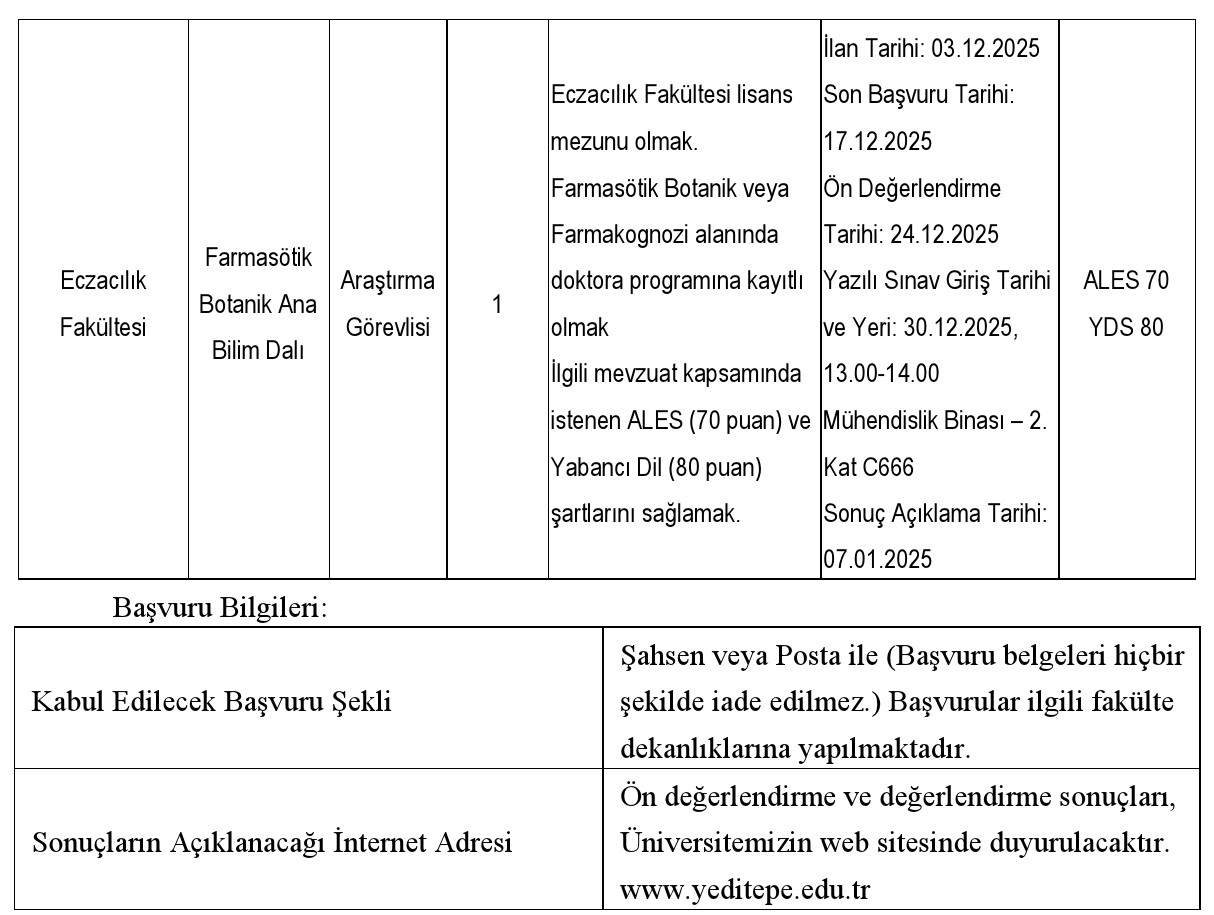 Yeditepe Üniversitesi Öğretim Üyesi ve Elemanı Alım İlanı. Son başvuru tarihi 17 Arlaık 2025