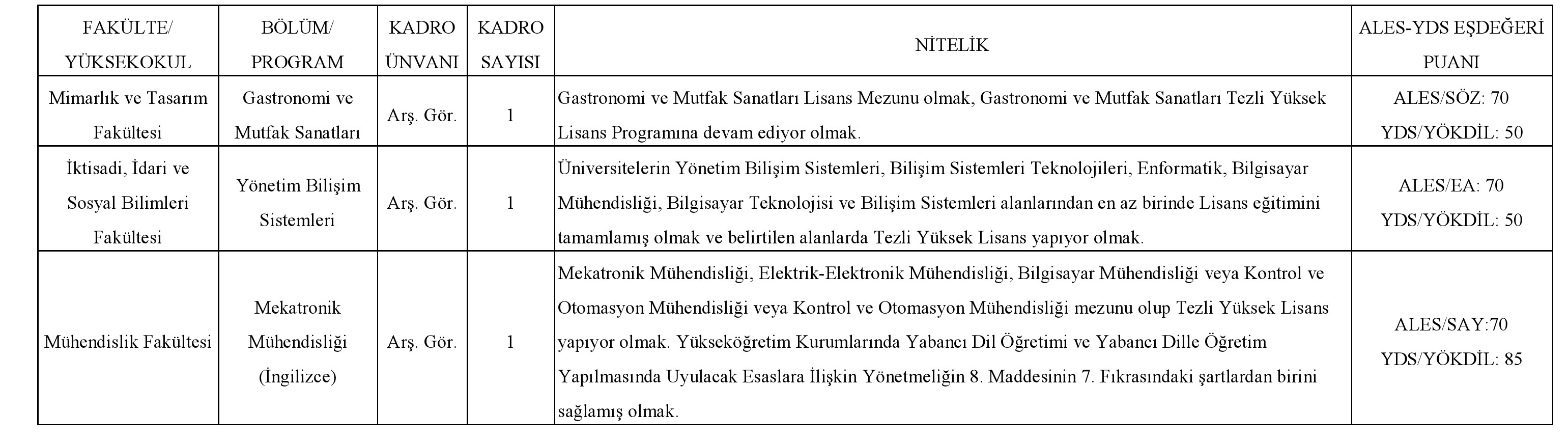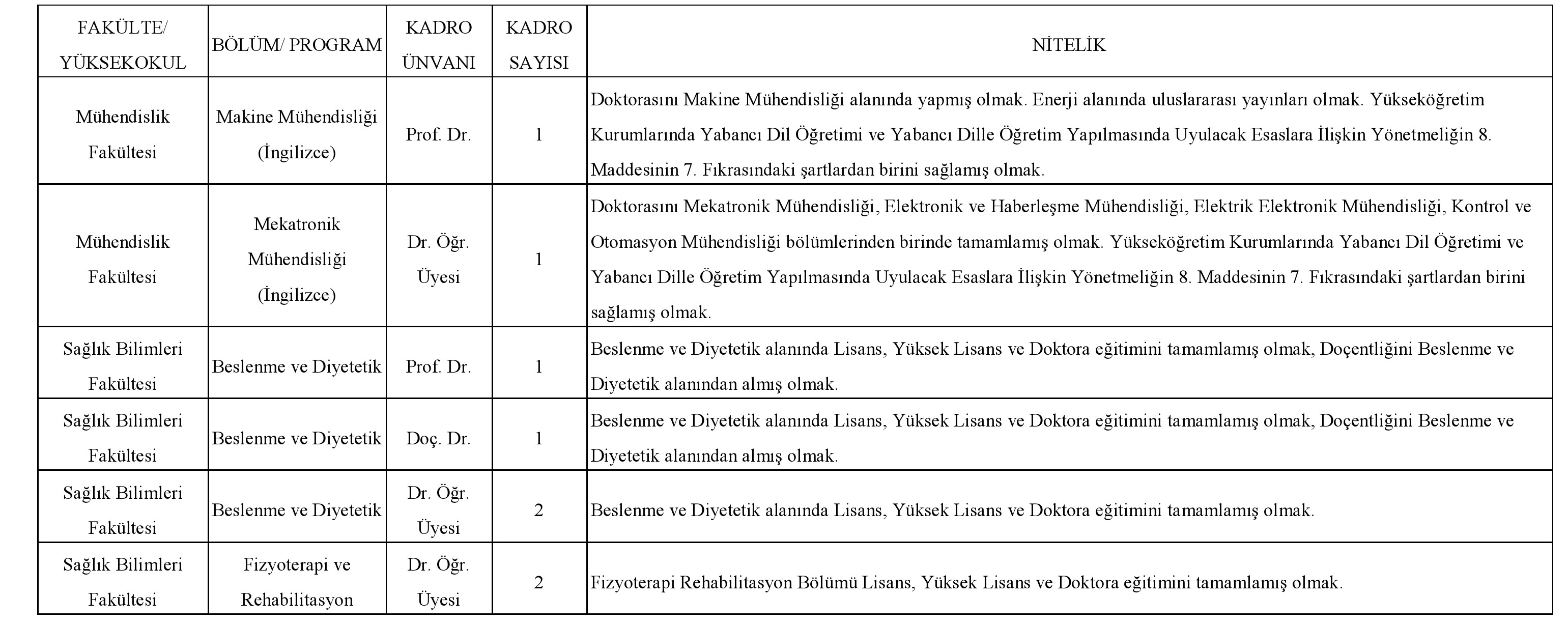 aşağıda belirtilen kadrolara öğretim elemanı alınacaktır.