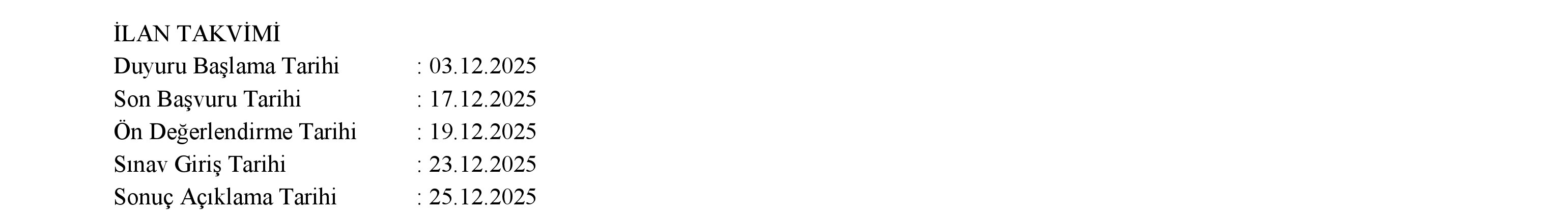 Başvuru süresi, ilan tarihinden itibaren 15 gündür. (Son başvuru tarihi 17.12.2025)
