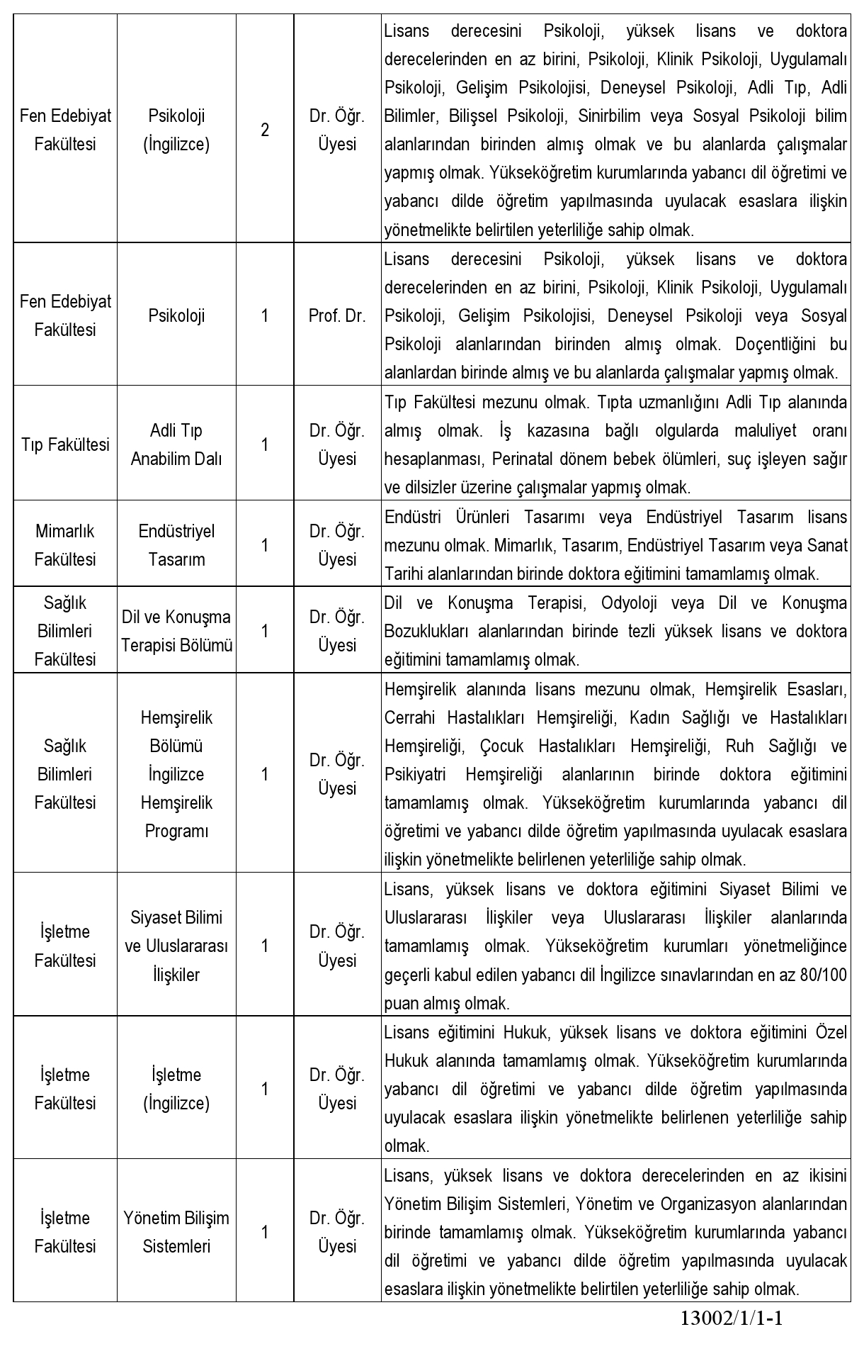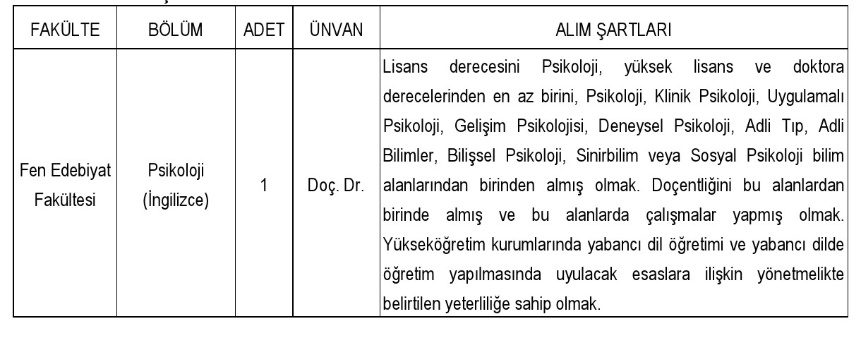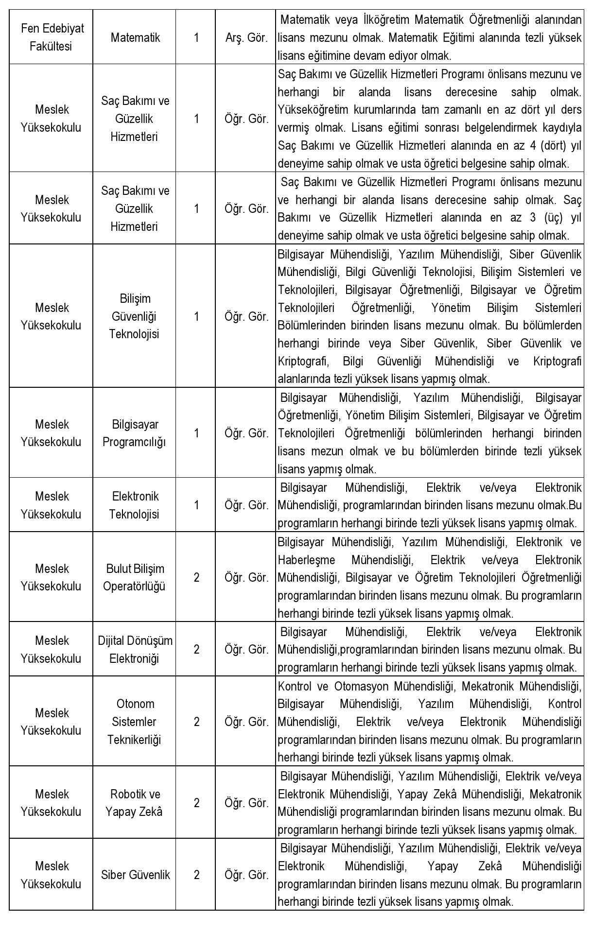 Üniversitemizin aşağıda belirtilen akademik birimlerine 2547 sayılı Yükseköğretim Kanunu ve Öğretim Üyeliğine Yükseltilme ve Atanma Yönetmeliği'nin ilgili maddeleri uyarınca, Üniversitemizin Akademik Birimlerine tam zamanlı öğretim üyeleri alınacaktır.