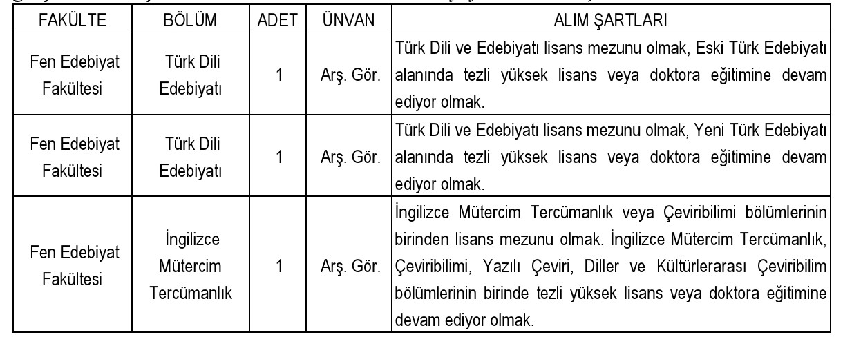 Üniversitemizin aşağıda belirtilen akademik birimlerine, 2547 sayılı Yükseköğretim Kanunu ve Öğretim Üyesi Dışındaki Öğretim Elemanı Kadrolarına Yapılacak Atamalarda Uygulanacak Merkezi Sınav ile Giriş Sınavlarına İlişkin Usul ve Esaslar Hakkında Yönetmelik'in ilgili maddelerine göre Öğretim Elemanları alınacaktır.