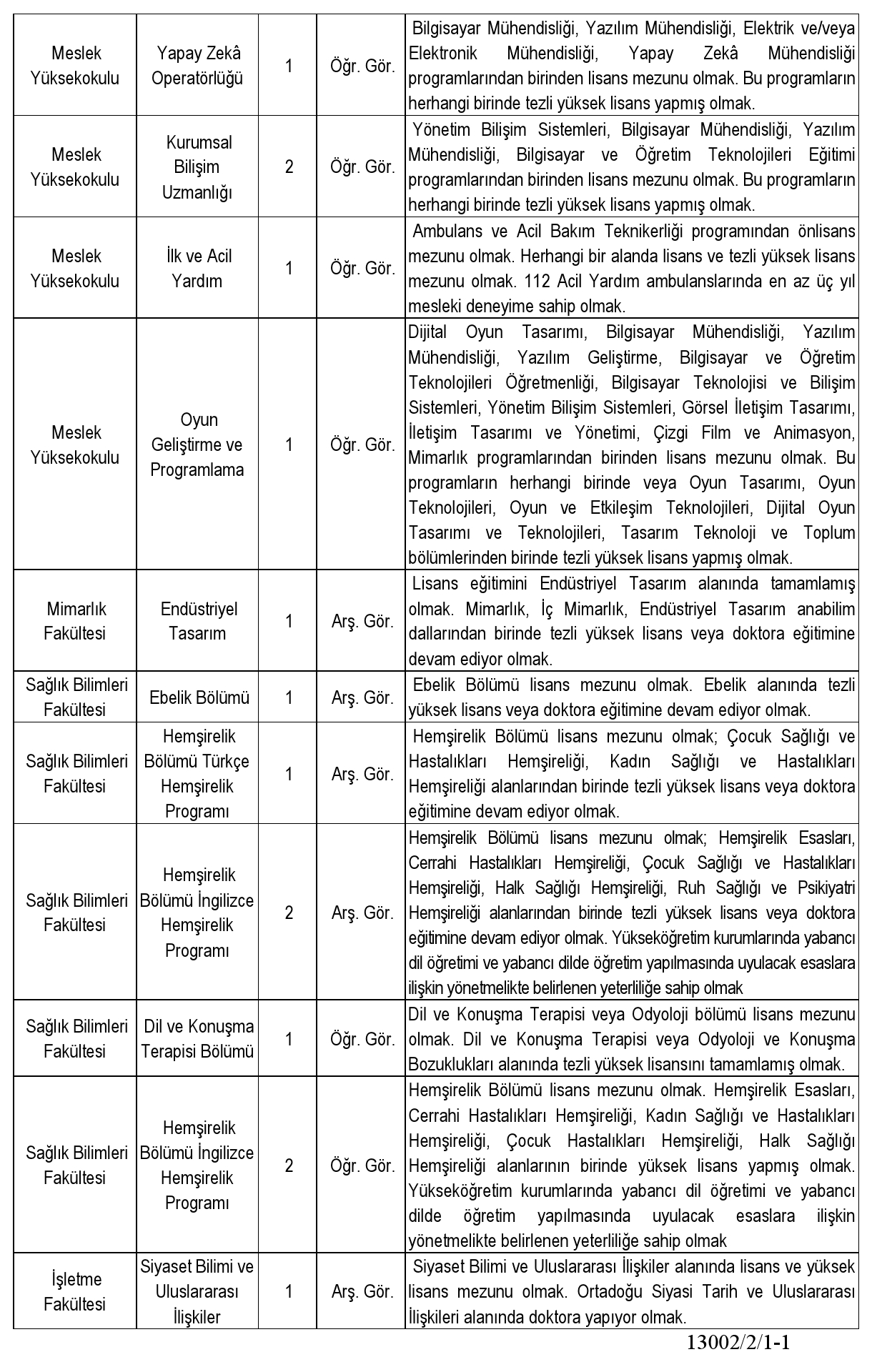 Başvuru süresi içinde yapılmayan, e-posta ile yapılan ve eksik belgeli başvurular dikkate alınmayacak olup, kargo ile yapılan başvuruların son başvuru tarihine kadar ilgili akademik birime ulaşmış olması gerekmektedir. Kargodaki gecikmeler dikkate alınmayacaktır. Kargo yolu ile başvuru yapan adaylara üniversite tarafından eksik evrakların tamamlanması hususunda geri dönüş sağlanmayacaktır. Adaylar sadece tek bir kadroya başvuru yapabilir.