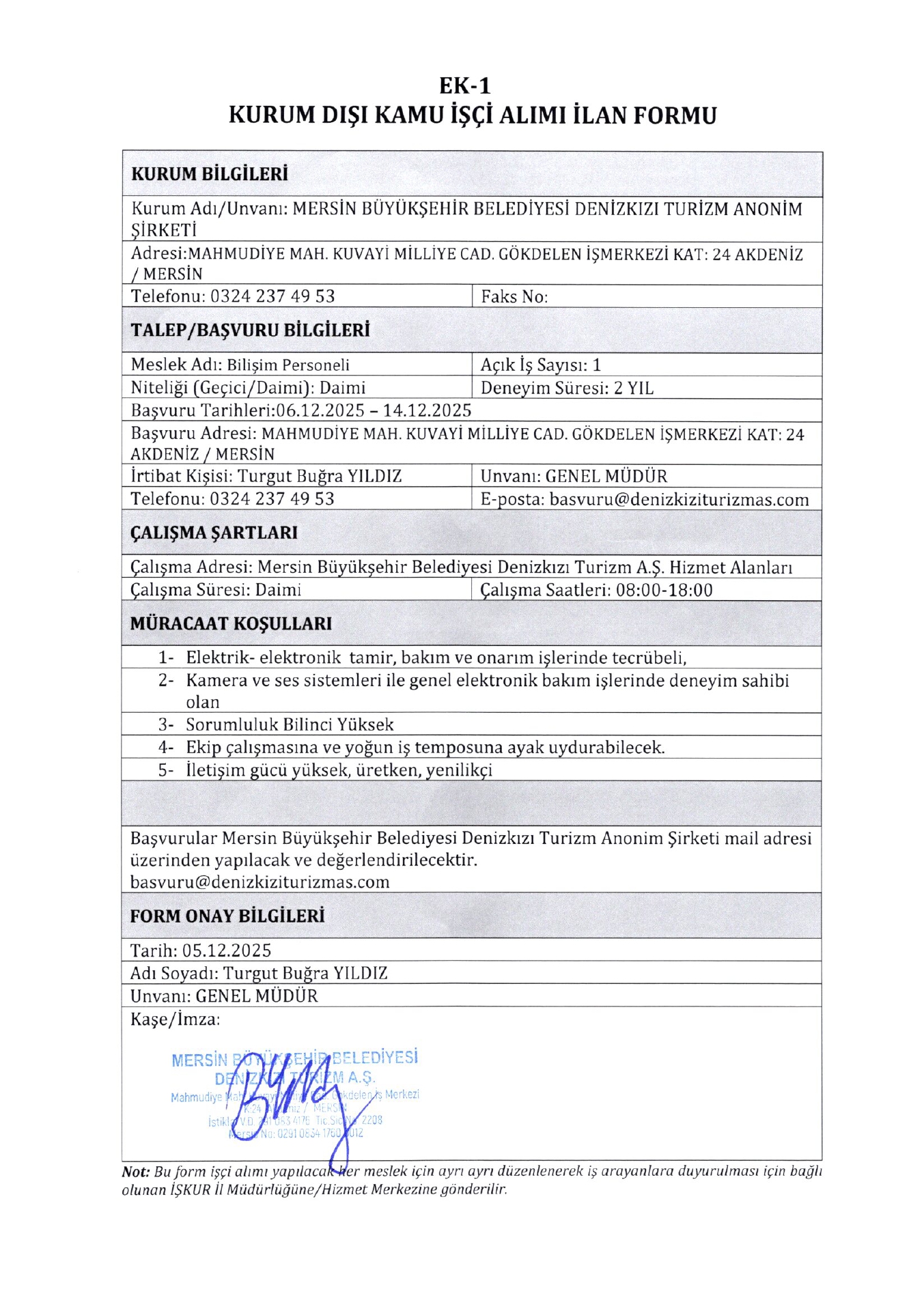Mersin Büyükşehir Belediyesi 1 İşçi Alacak. Son başvuru tarihi 14 Aralık 2025
