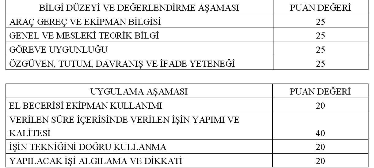 3- Kadın Terzi, Erkek Terzi, Kadın Gardıropçu, Erkek Gardıropçu, Lutiye, Sahne Marangozu, Heykeltraş, Sahne Demircisi sınavına girecek adaylar önce "Uygulama Aşaması"na tabi tutulacaklardır. Bu aşamada toplam 100 puan üzerinden 70 puan ve üzeri alanlar "Bilgi Düzeyi ve Değerlendirme Aşaması"na geçebileceklerdir.