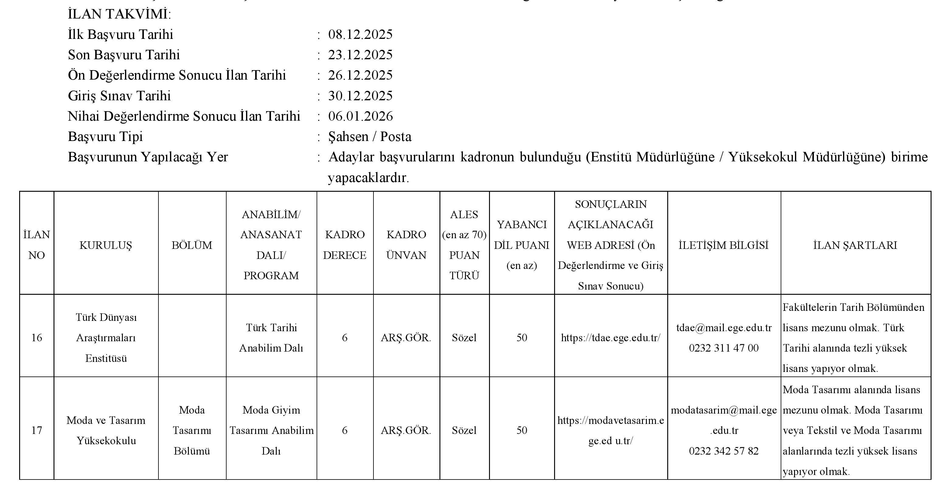 5- İlanımıza www.ege.edu.tr adresinden ulaşılabilir.