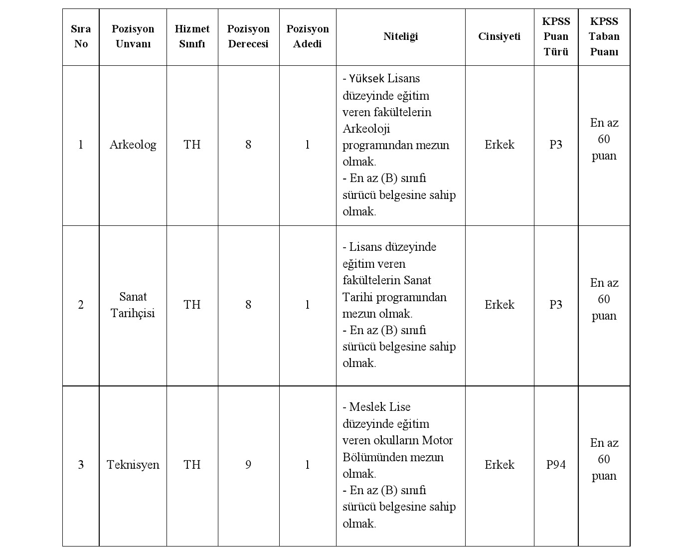 Kastamonu ili Kastamonu Belediye Başkanlığı bünyesinde 5393 sayılı Belediye Kanununun 49 uncu maddesi ile Mahalli İdarelere İlk Defa Atanacaklara Dair Sınav ve Atama Yönetmeliği hükümlerine göre aşağıda unvanı, sınıfı, derecesi, adedi, nitelikleri, KPSS puan türü, KPSS taban puanı ve diğer şartları taşımak kaydıyla, belirtilen boş pozisyona tam zamanlı sözleşmeli personel alınacaktır.