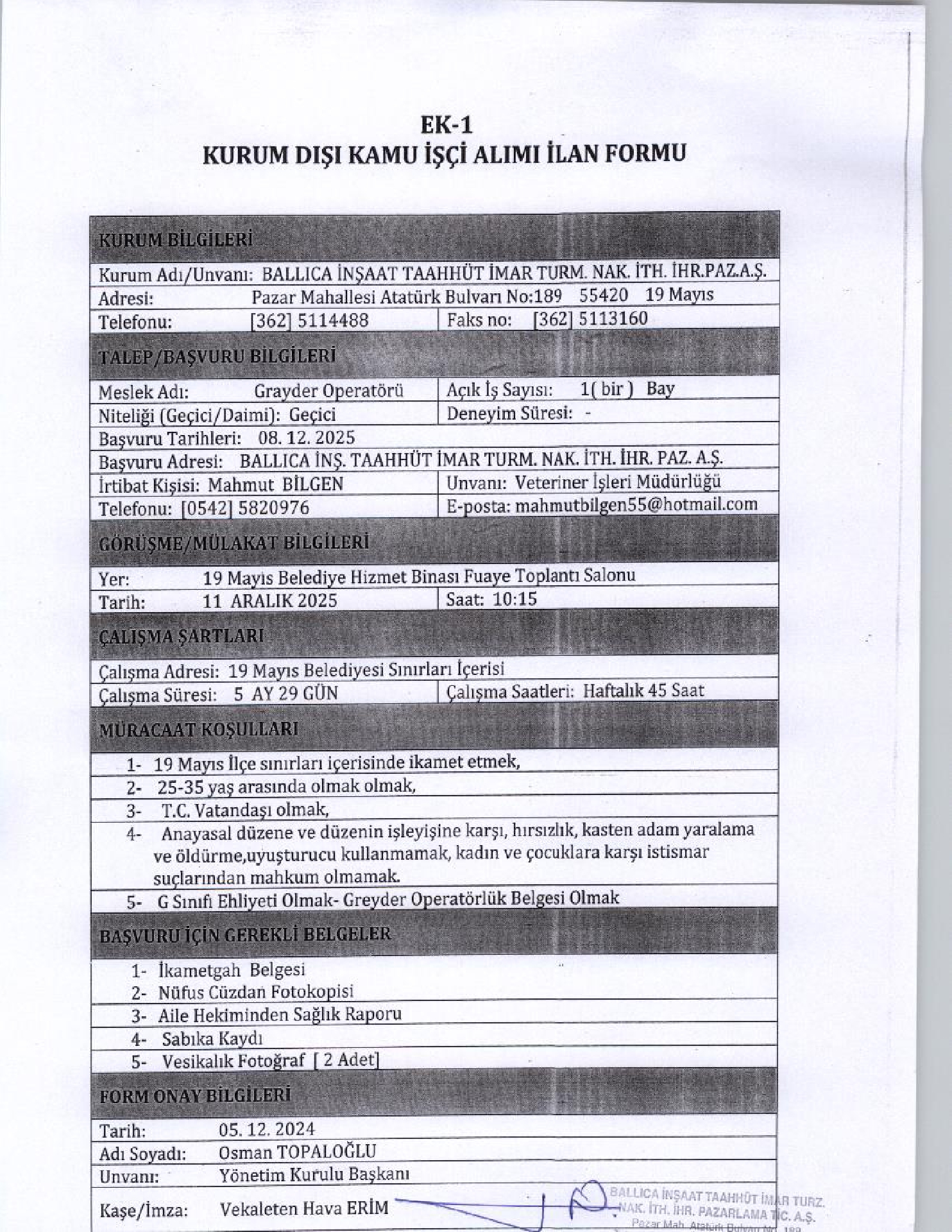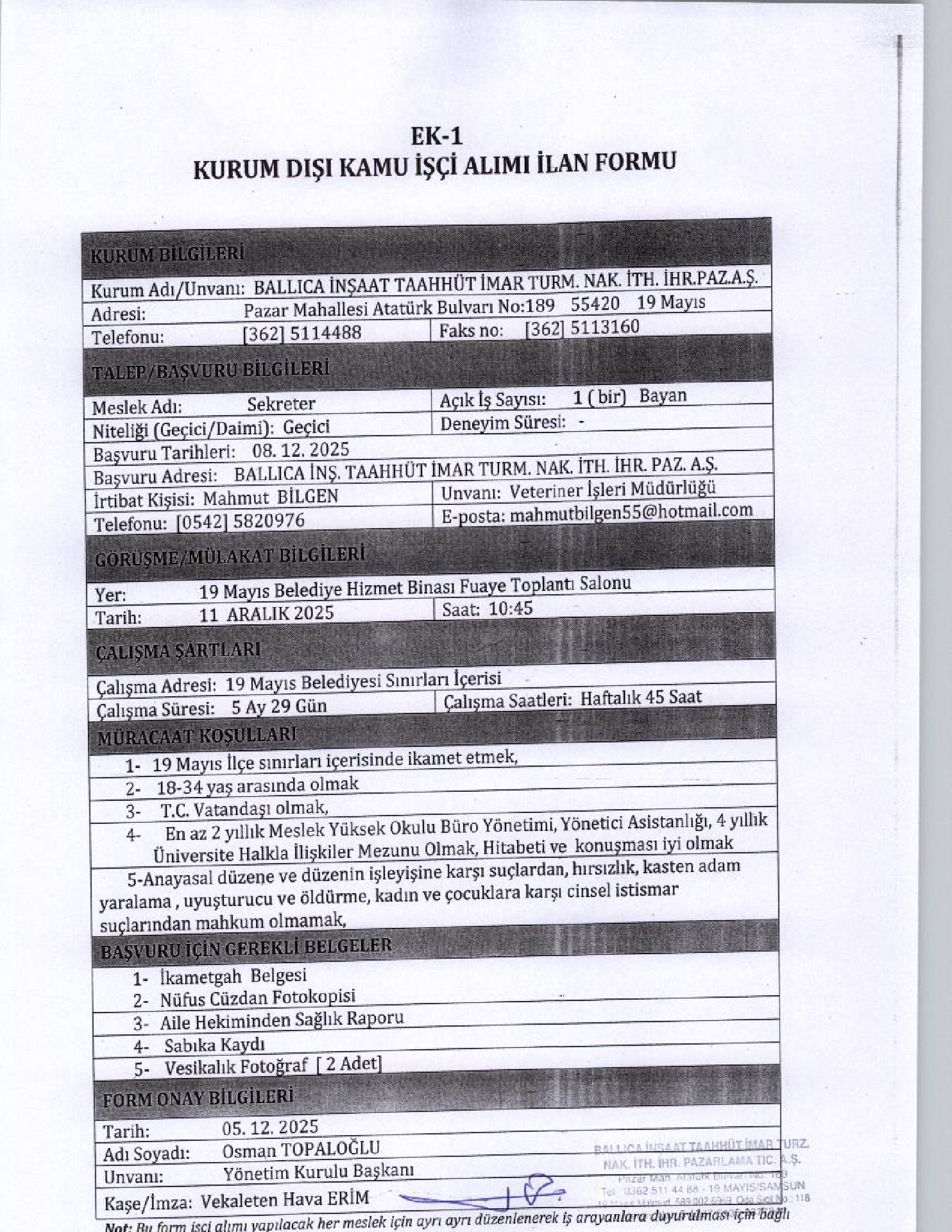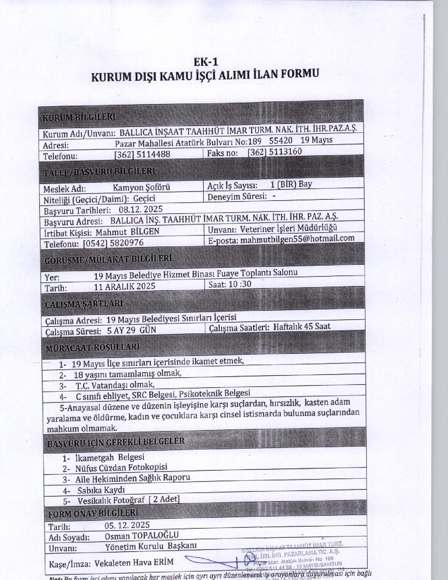 Ana sayfaGeçici İşçi İlanları Ballıca İnşaat Geçici 31 İşçi Alacak Ballıca İnşaat Geçici 31 İşçi Alacak. Son başvuru tarihi 11 Aralık 2025 Kaynak : İşkur İlan Giriş : 08 Aralık 2025 22:42, Son Güncelleme : 08 Aralık 2025 23:29 Yazdır Yorumlar (0) Abone Ol