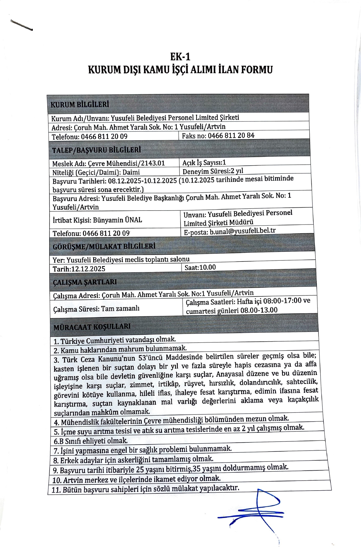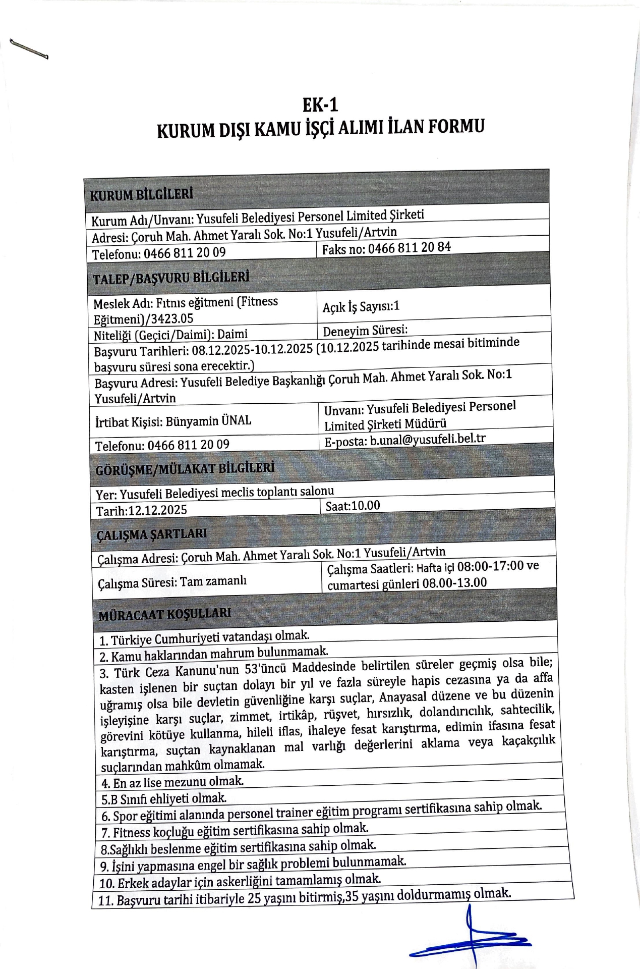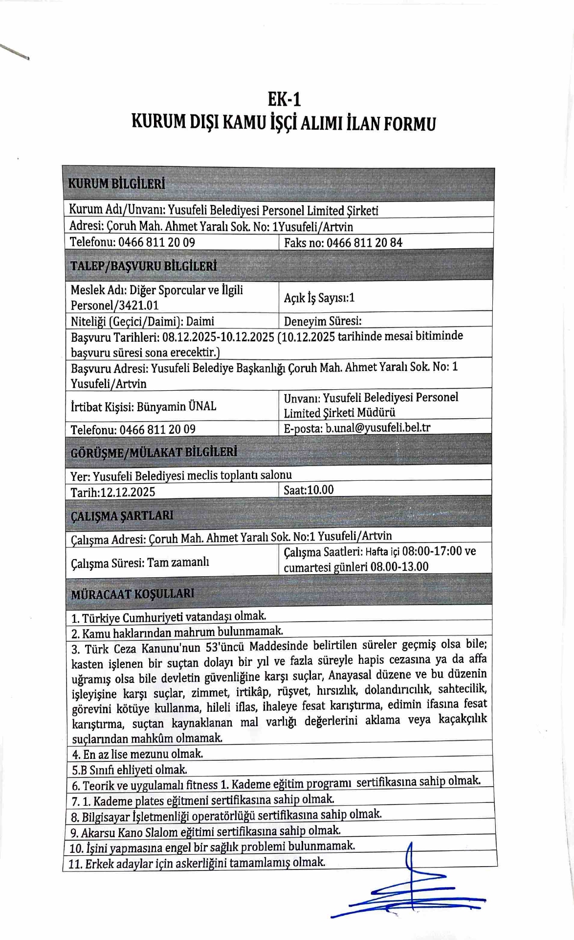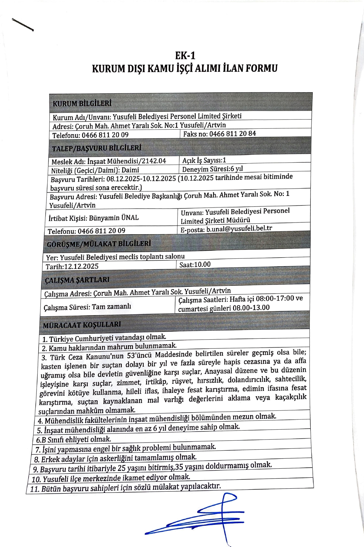 Ana sayfaDaimi İşçi İlanları Artvin Yusufeli Belediyesi 5 İşçi Alacak Artvin Yusufeli Belediyesi 5 İşçi Alacak. Son başvuru tarihi 10 Aralık 2025 Kaynak : İşkur İlan Giriş : 08 Aralık 2025 23:11, Son Güncelleme : 08 Aralık 2025 23:21 Yazdır Yorumlar (0) Abone Ol