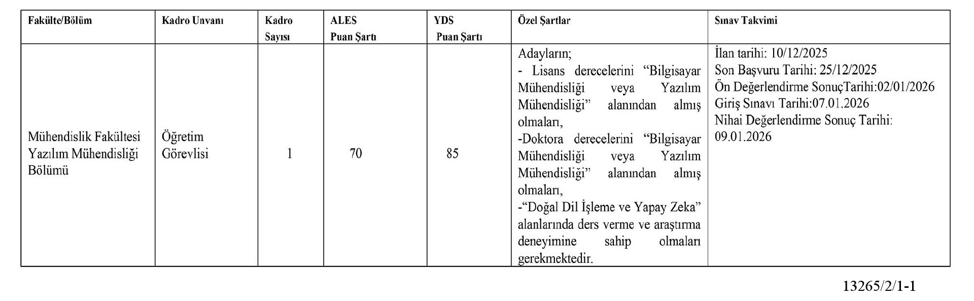 ç) Yükseköğretim Kurulu tarafından kabul edilen merkezi yabancı dil sınavları ile eşdeğerliği kabul edilen uluslararası yabancı dil sınavlarından yüz tam puan üzerinden asgari seksen beş puanla başarılı olması. (Çalışılan yükseköğretim kurumundan ayrılan ve iki yıldan fazla öğretim elemanlığına ara verenlerin başka bir yükseköğretim kurumuna öğretim elemanı olarak geçişinde de söz konusu merkezi yabancı dil sınav puanlarına ilişkin belgeleri ilgili merkezi sınavın geçerlilik süresine göre yeniden ibraz etmeleri gerekir.) İlana konu olan kadro tam zamanlıdır.