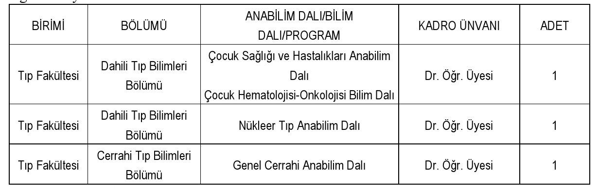 Üniversitemizin aşağıda belirtilen birimlerine 2547 sayılı Yükseköğretim Kanunu ile Öğretim Üyeliğine Yükseltilme ve Atanma Yönetmeliğinin ilgili maddeleri uyarınca, Üniversitemiz Öğretim Üyeliğine Yükseltme ve Atama Kriterlerini sağlamış olmak koşuluyla Öğretim Üyeleri alınacaktır.