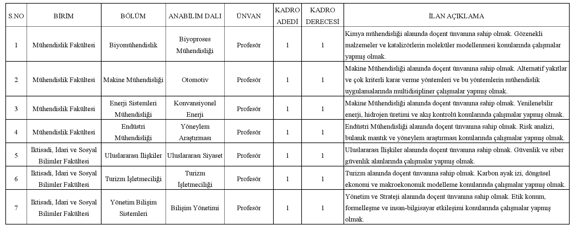 ÖĞRETİM ÜYESİ ALIM İLANI