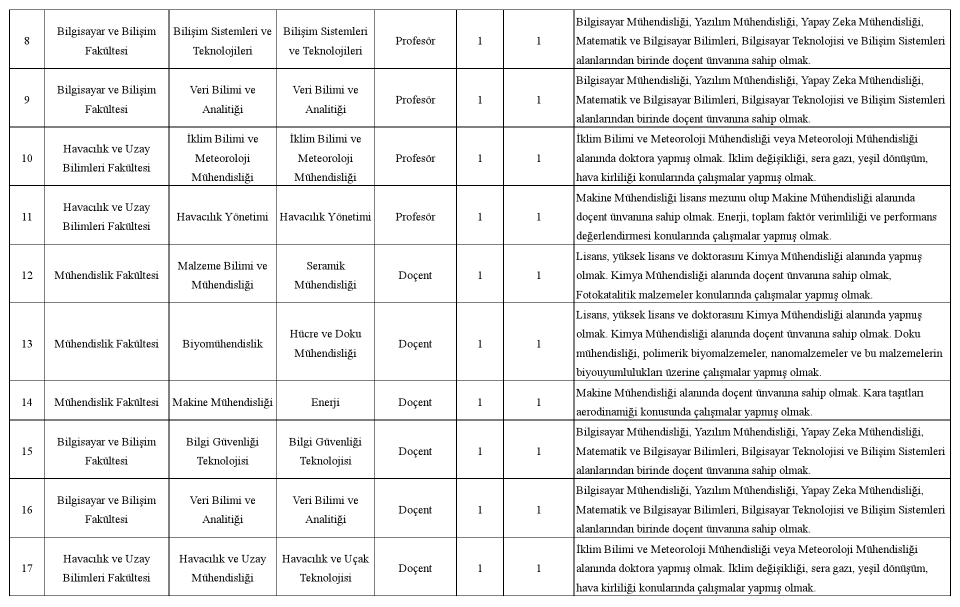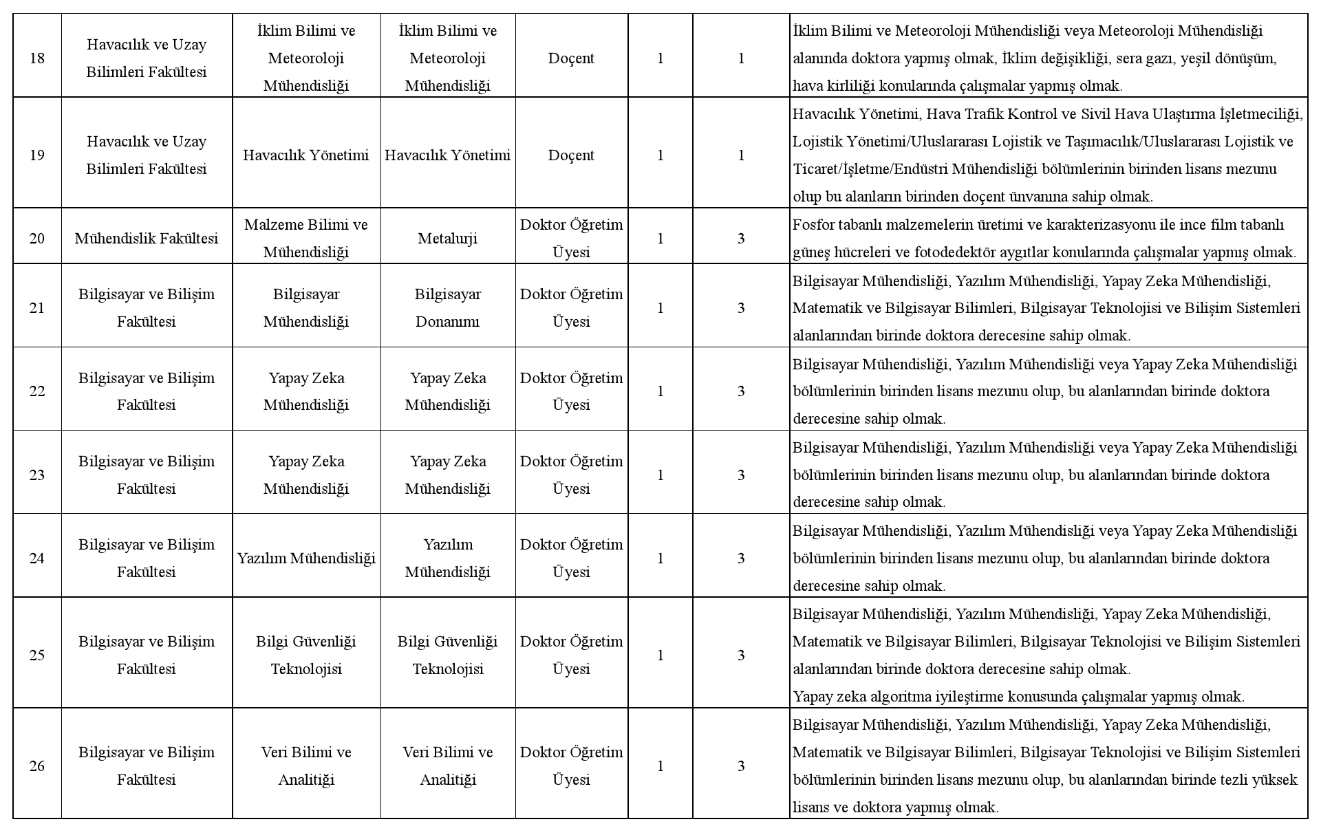 Üniversitemizin aşağıda belirtilen Birimlerine 2547 sayılı Yükseköğretim Kanunu, 657 sayılı Kanunun 48. maddesi ve Öğretim Üyeliğine Yükseltilme ve Atanma Yönetmeliği ile "Adana Alparslan Türkeş Bilim ve Teknoloji Üniversitesi Öğretim Üyeliğine Atanma ve Yükseltilme Kriterleri" hükümleri çerçevesinde öğretim üyesi alınacaktır.