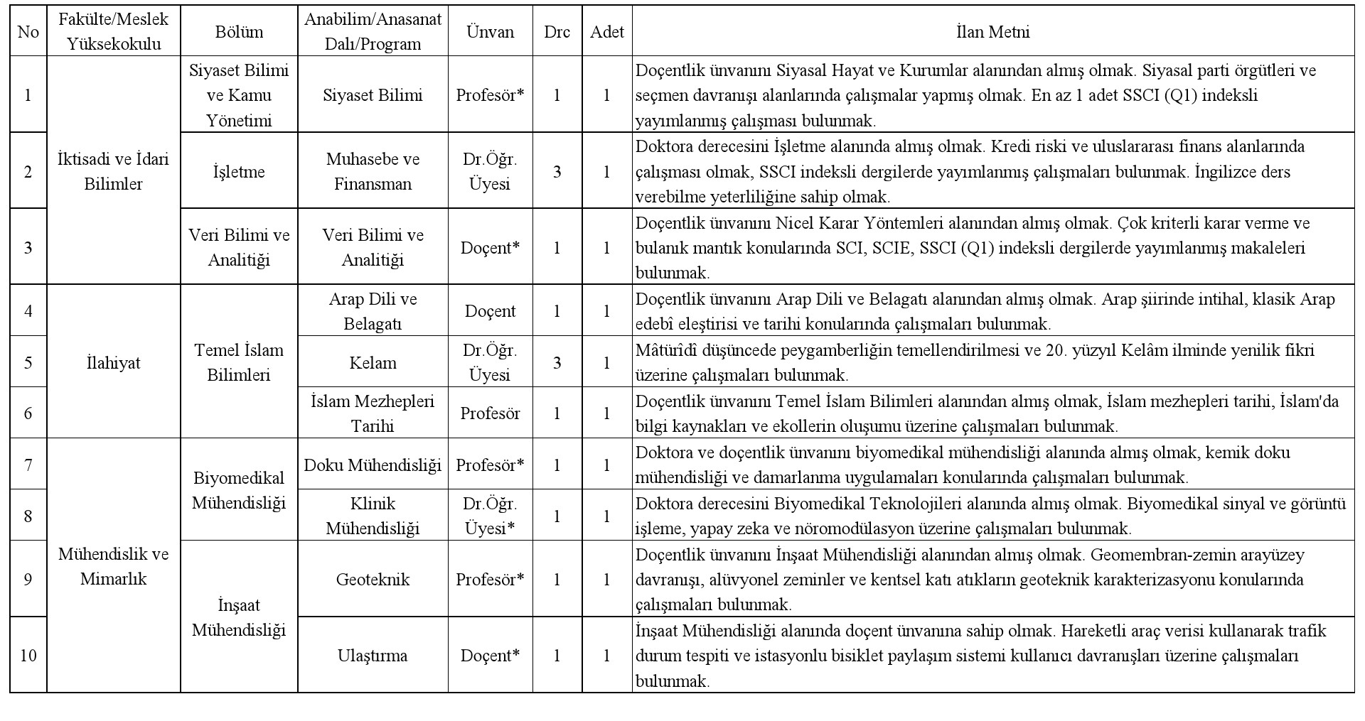 ÖĞRETİM ÜYESİ ALIM İLANI